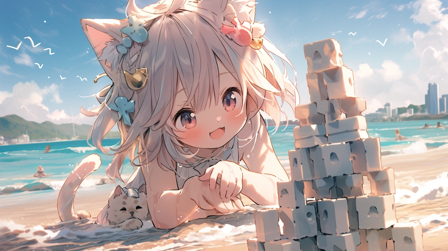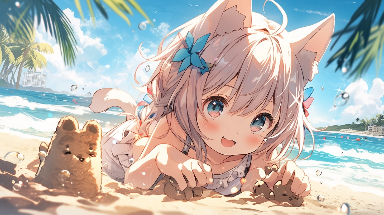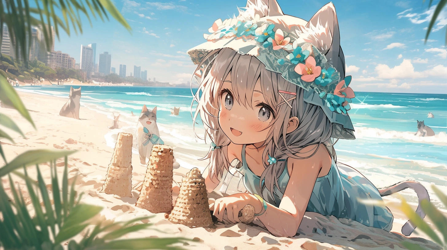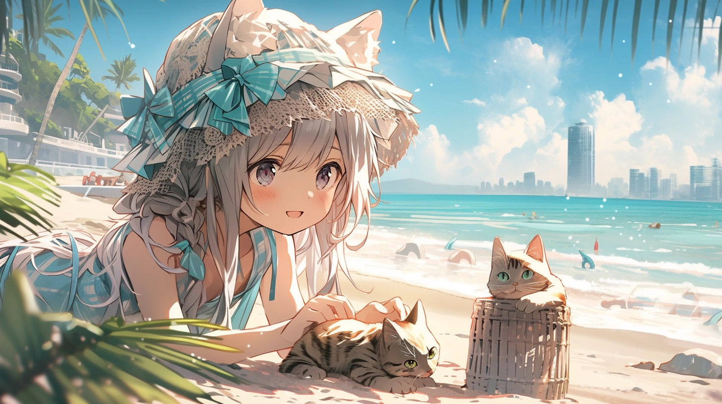 砂浜に猫。