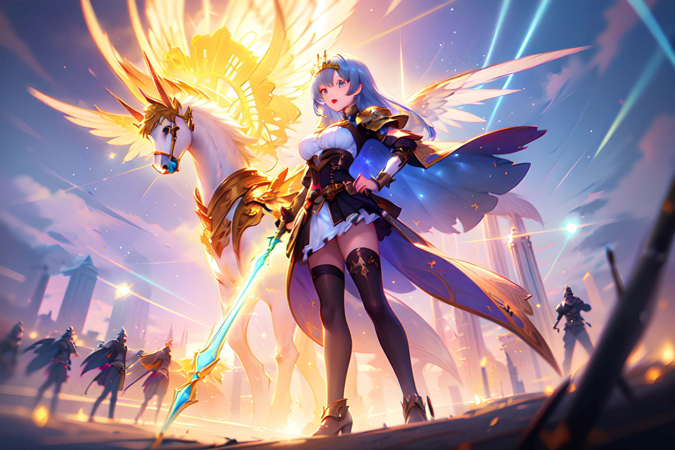 (masterpiece, best quality:1.3), illustration, (extream detailed), one girl, angel Descending