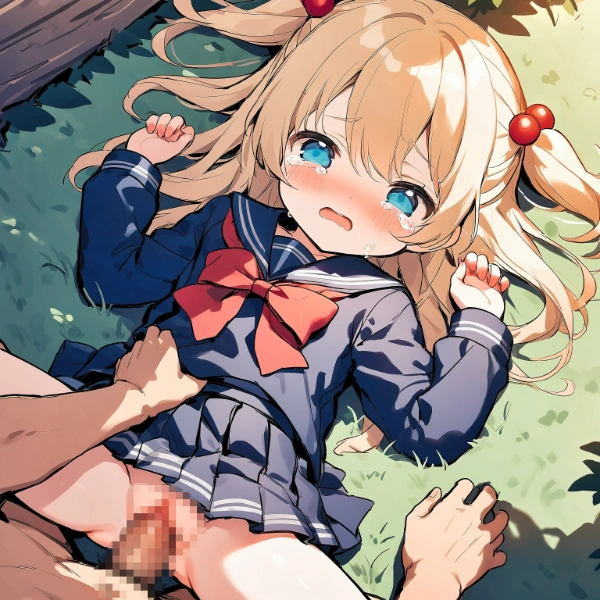 Rape of blonde girl in light blue dress