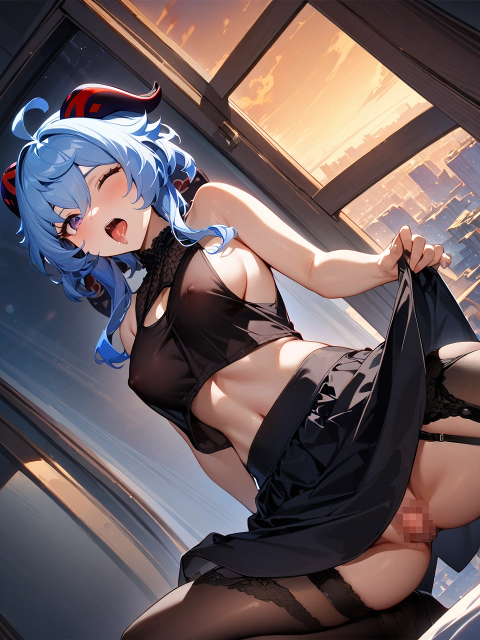 スケスケタンクトップ&ミニスカ持ち上げ【原神・甘雨】