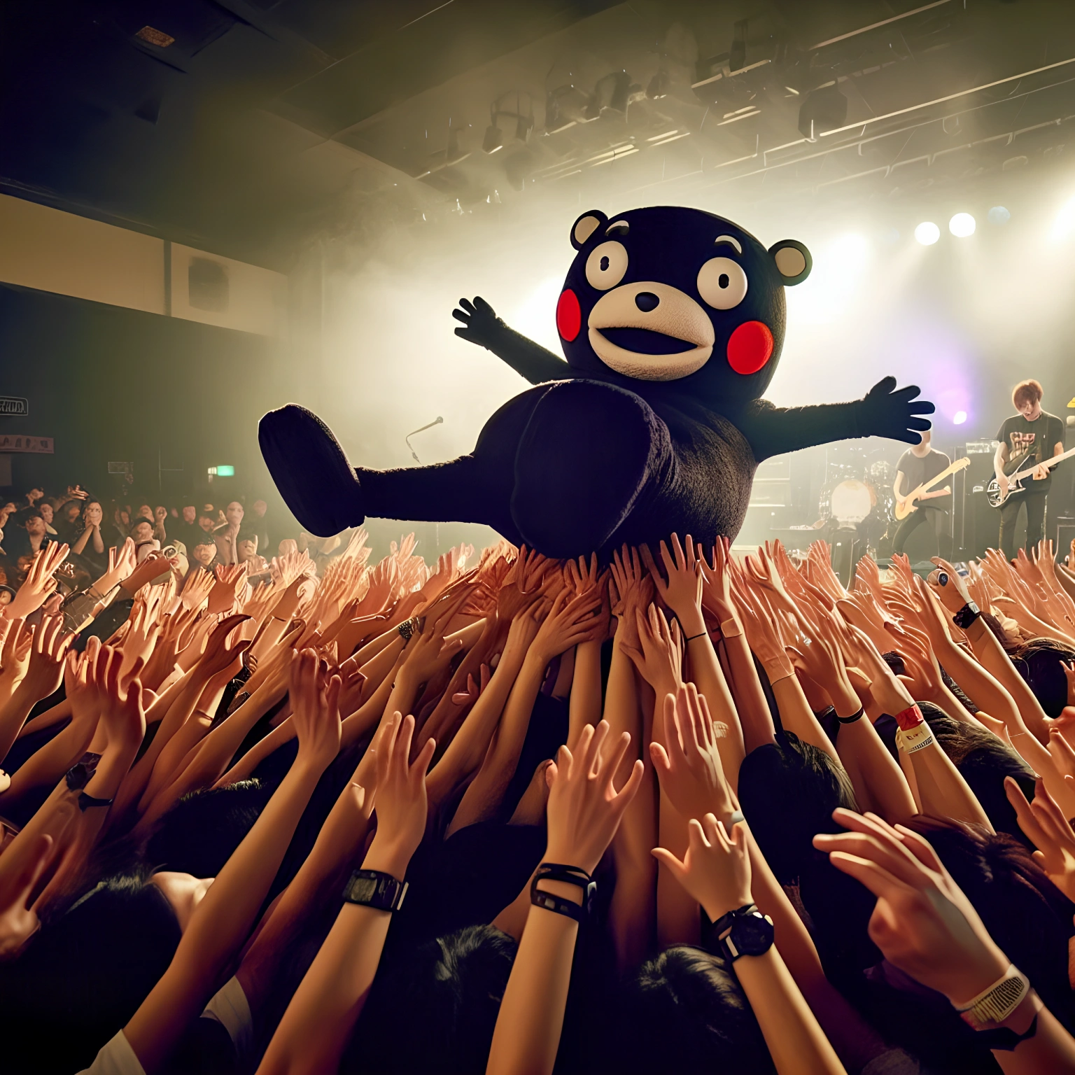 ライブハウスによってはダイブ禁止だったり~?w 重そうですよね、くまモンww ありがとうございました。