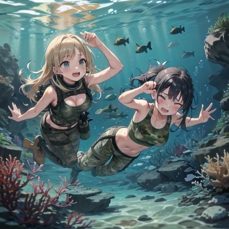 最初は普通に水着にしてたんですが、軍人だとわかりにくいのでなら服着せたら良いんじゃ?と思いまして。でも水中ってなんか海の中に海がある、みたいにすぐなるんですよね