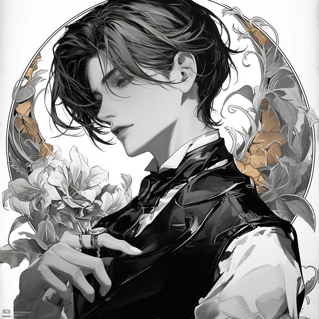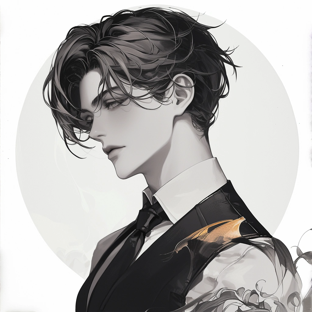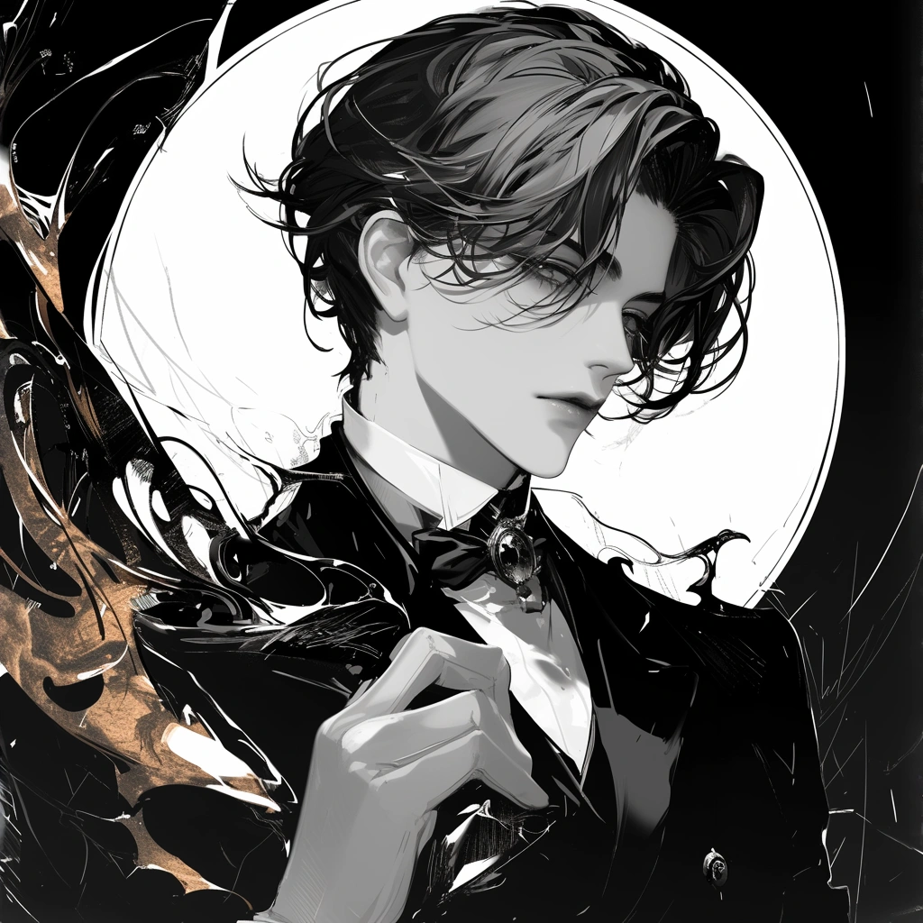 Monochrome painting of a beautiful man