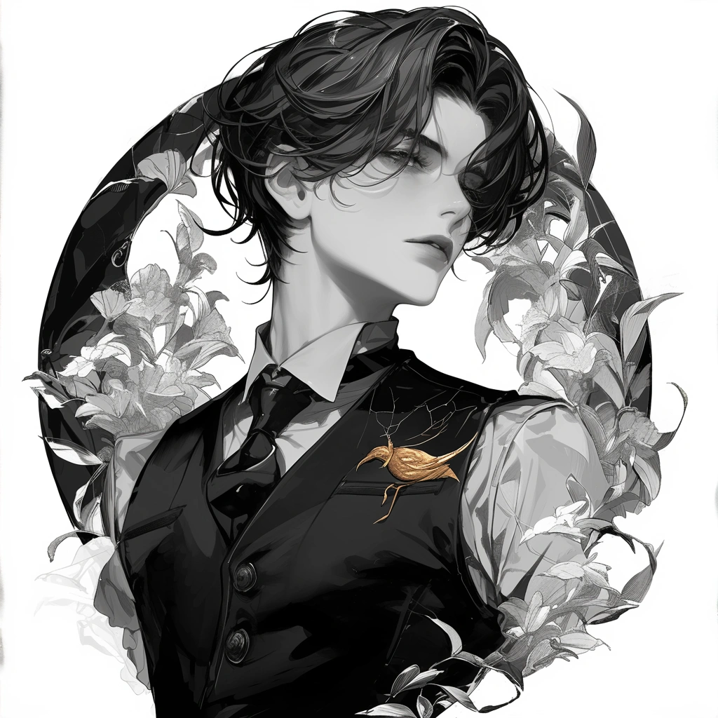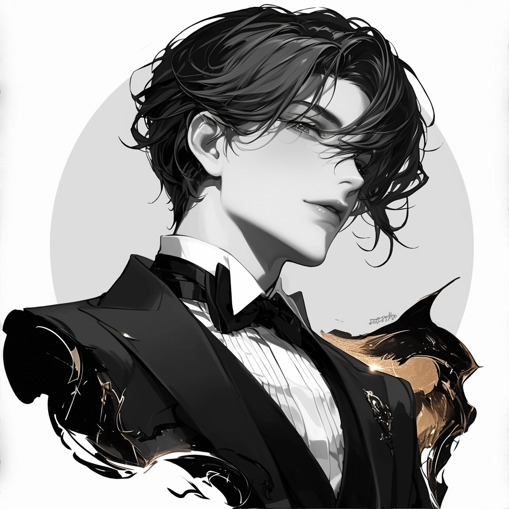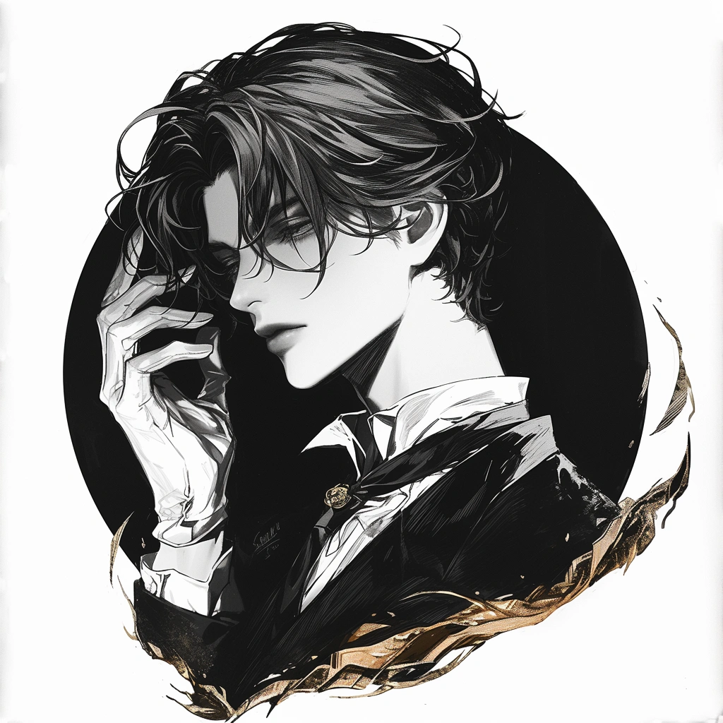 Monochrome painting of a beautiful man