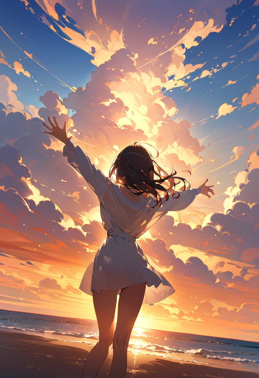 (masterpiece, best quality:1.3), illustration, (extream detailed), one girl, angel Descending
