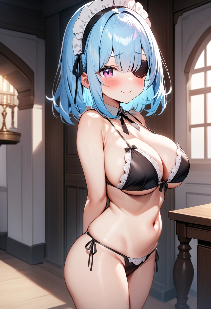 お坊ちゃんに眼帯👓を付けさせられた青髪メイド🧹👗、アミマ