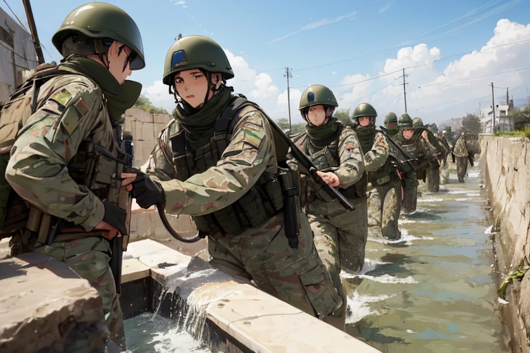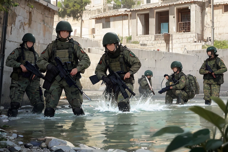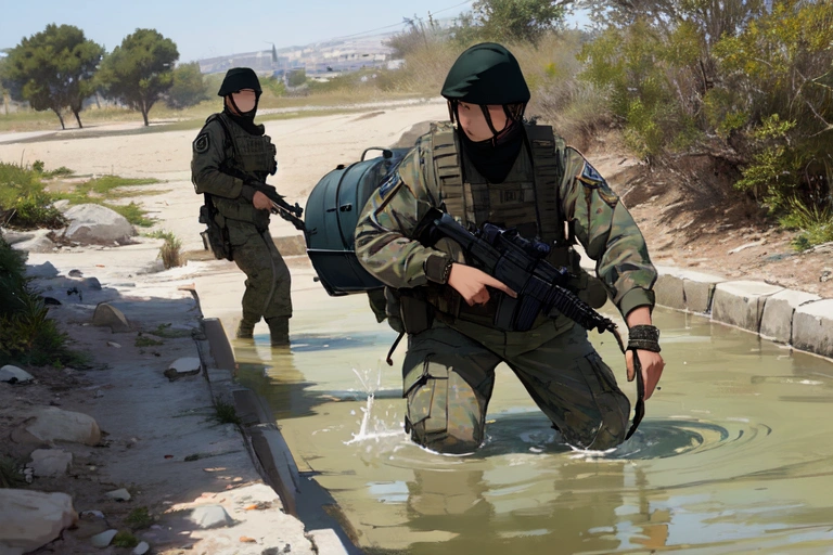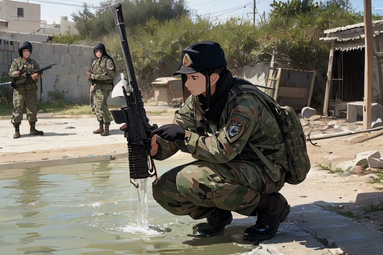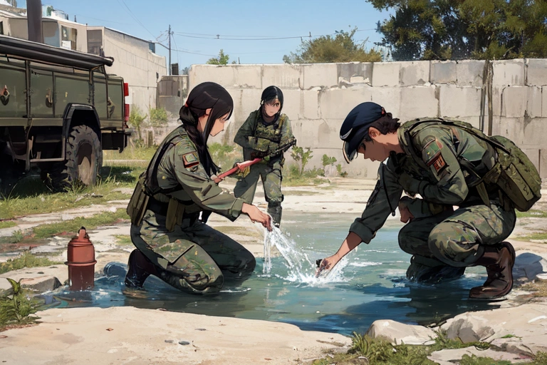 1st photo: \"Oh! It\'s a water source! Water quality inspection and surrounding enemy search!!\"