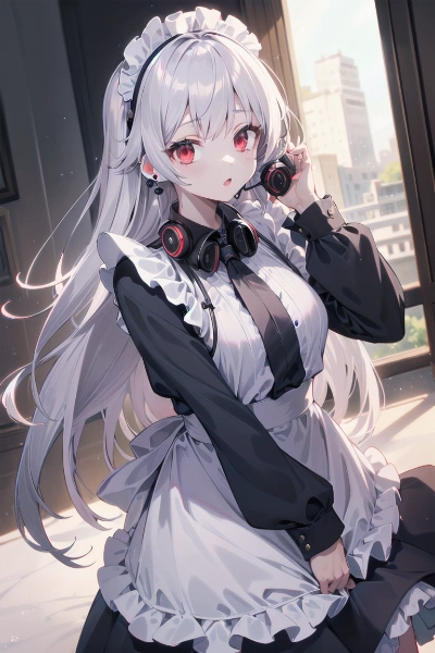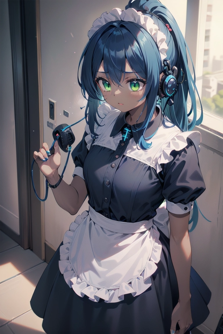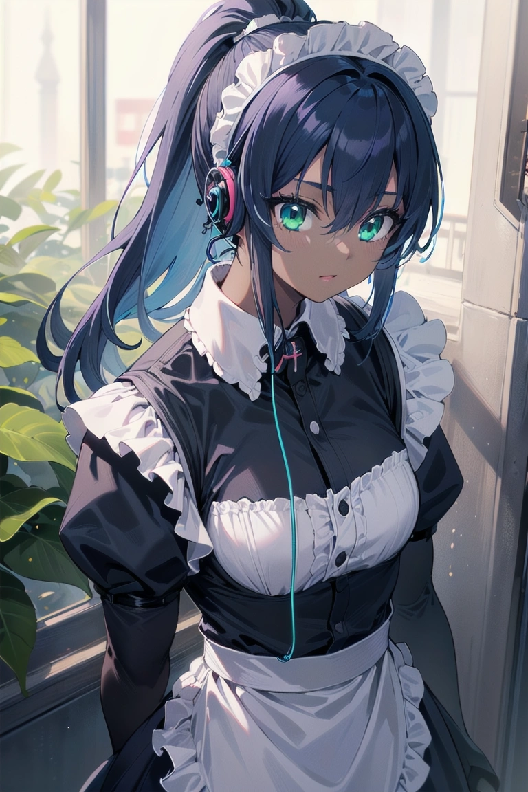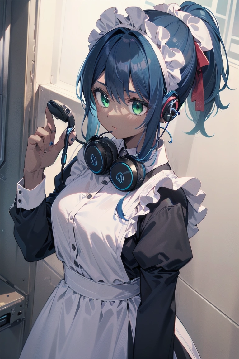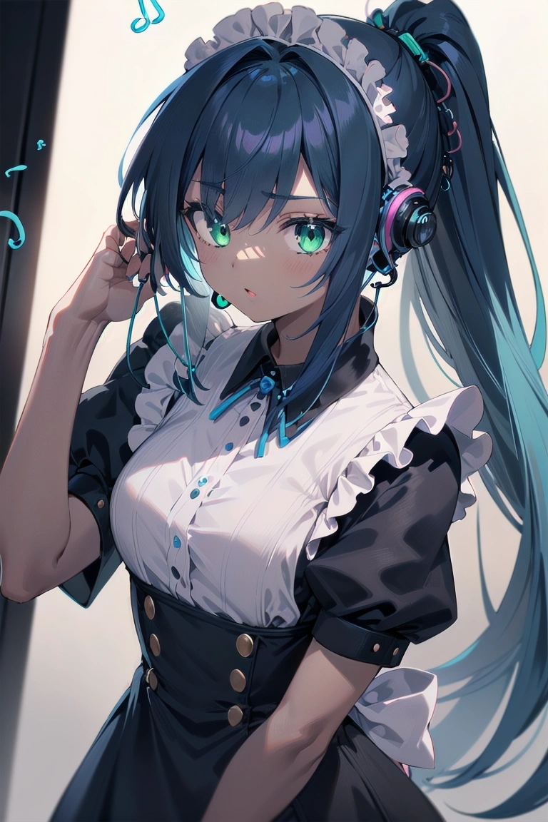 イヤホンと青ポニテメイドちゃん