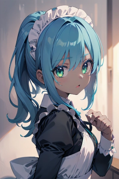 青ポニテメイドちゃんにカチューシャをお願いしてみた