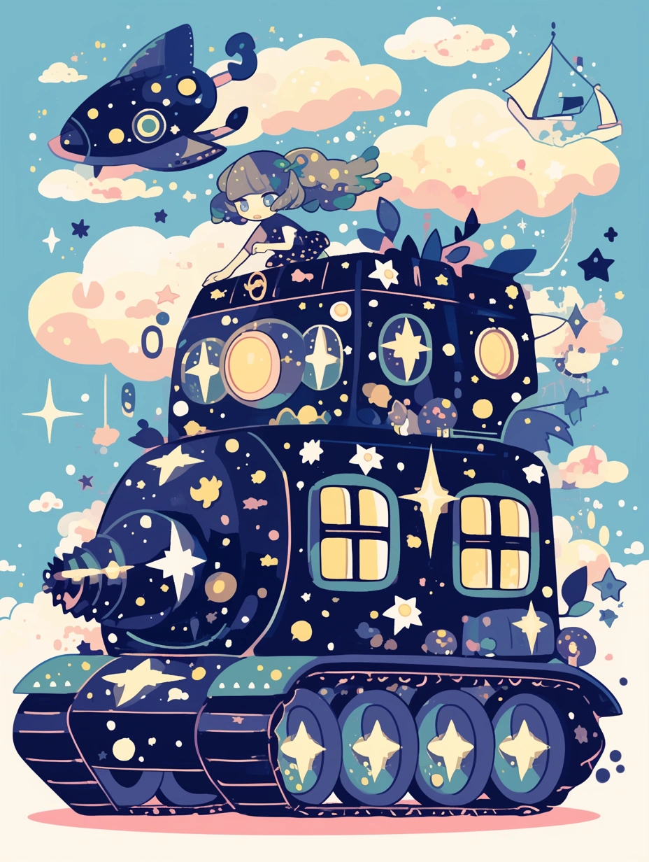まるで夜空のようにキラキラの戦車がすきすしすしですすすすっっ❢❢❢🍣✨ 夢職人さんのイラスト毎回可愛すぎてですね…どうしていいね1回しか押せないのだ??(心の中で連打っ👈👈💥)