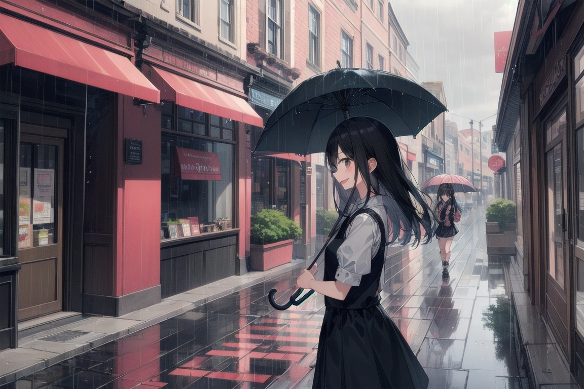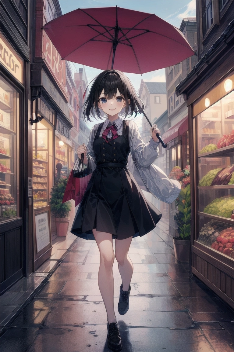 雨の商店街を歩く