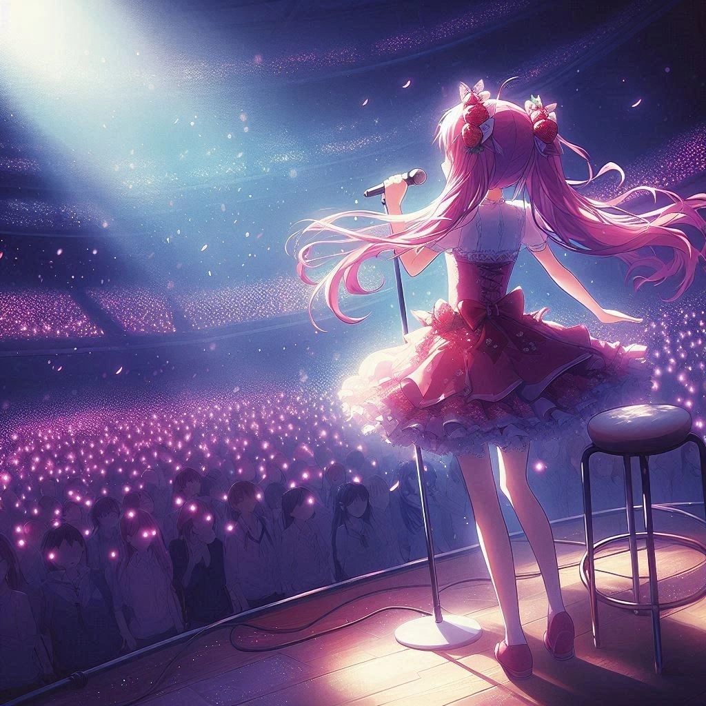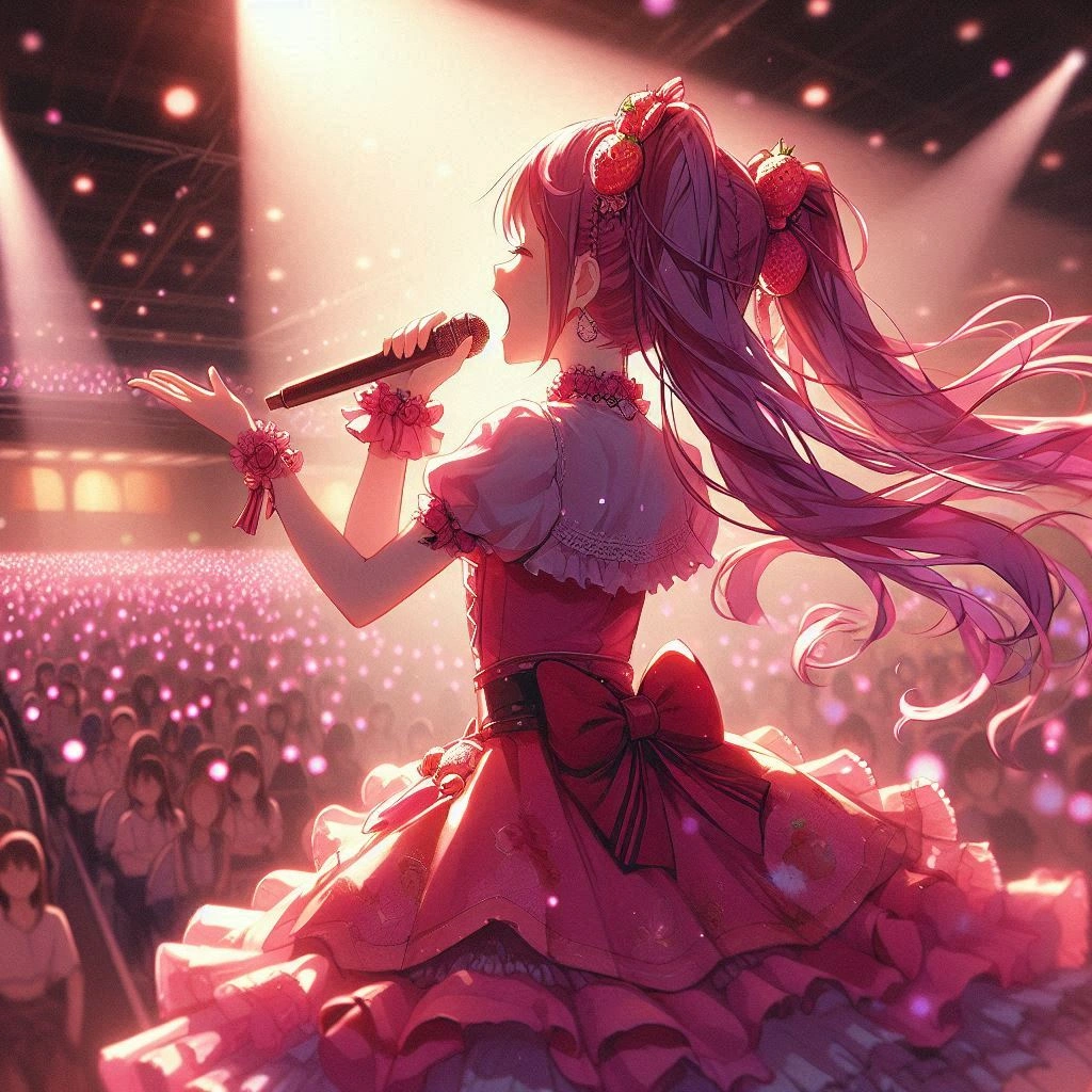 お客さんにはイチゴ色のサイリウムを振ってもらいましたw