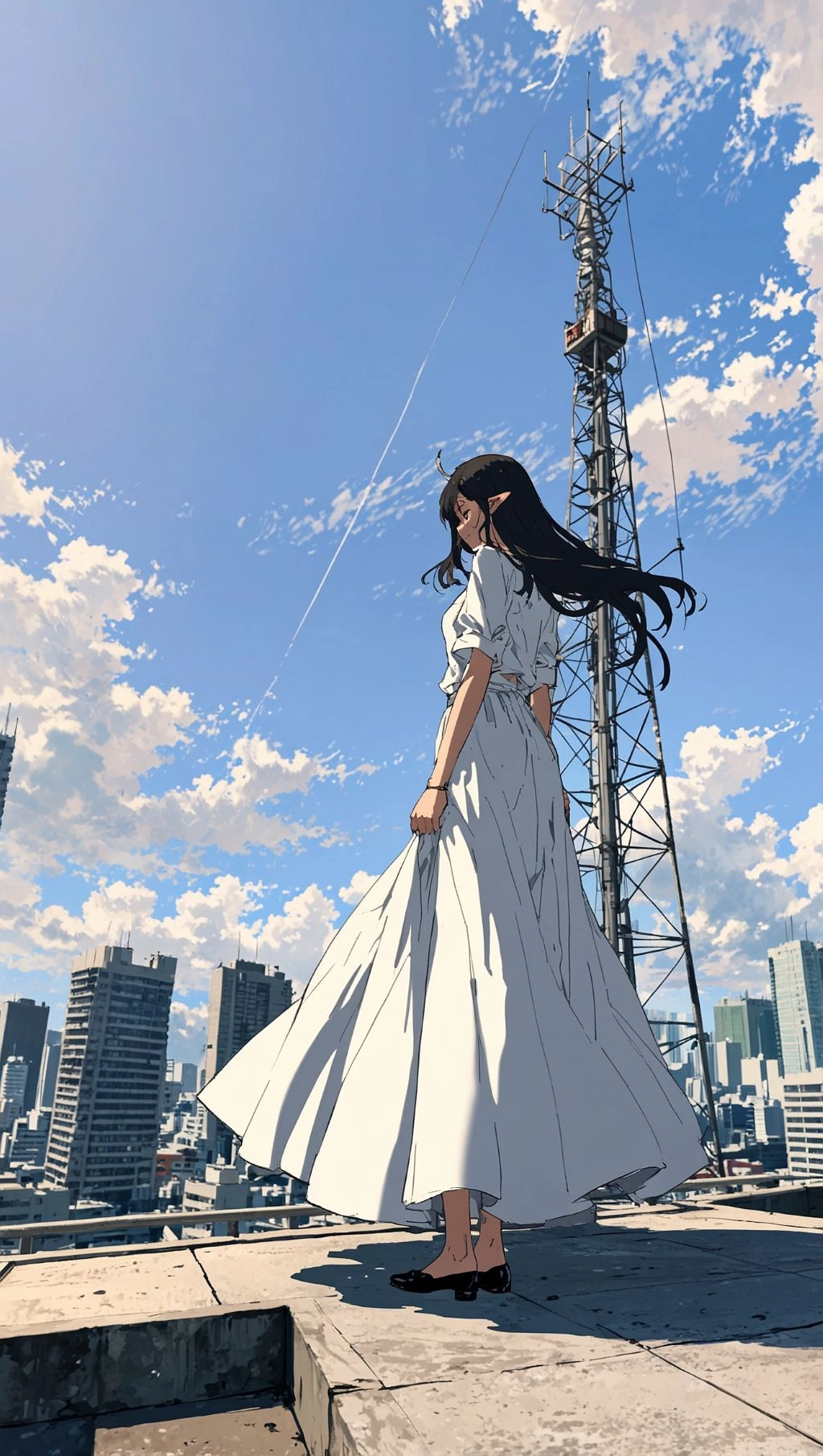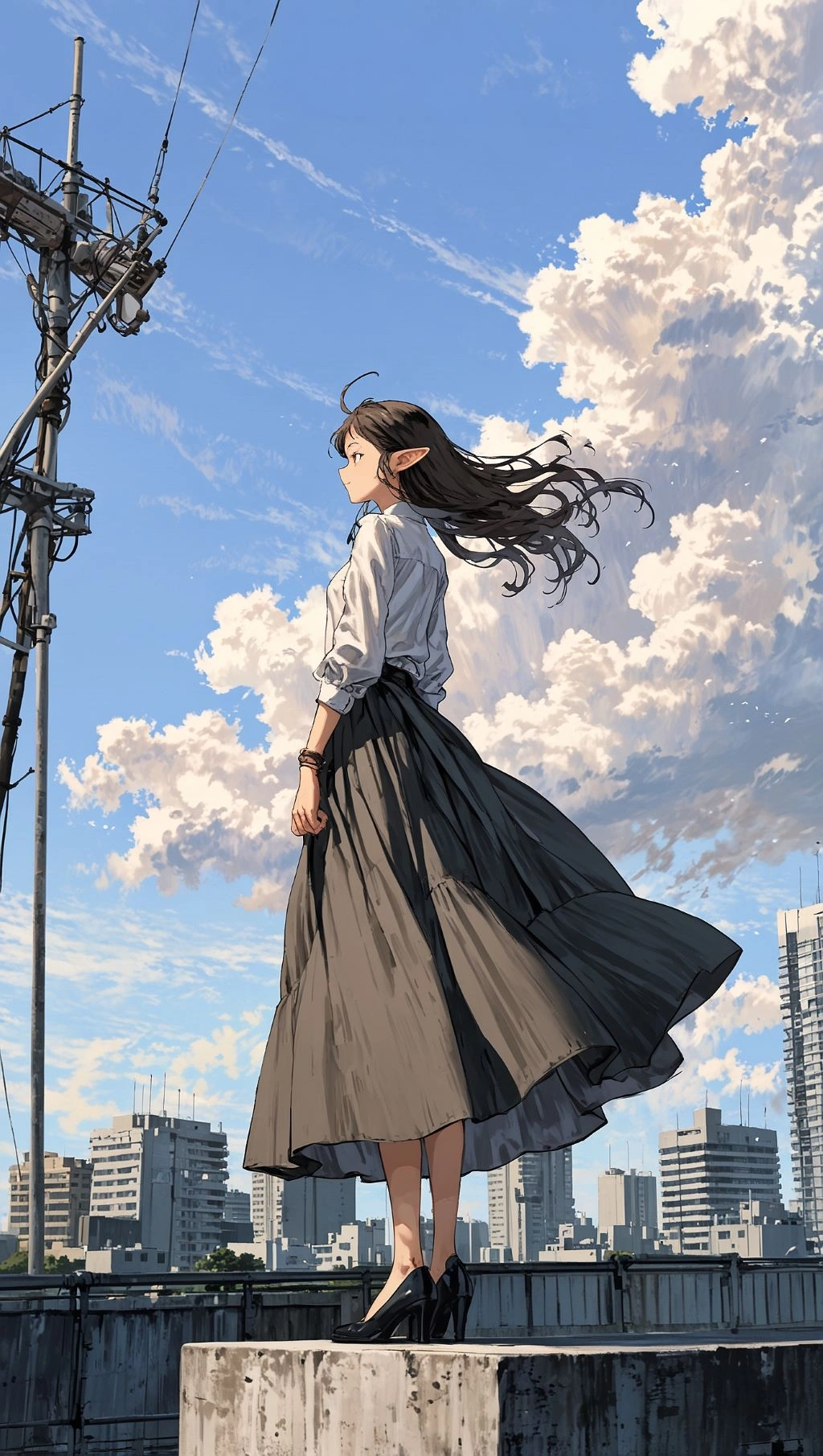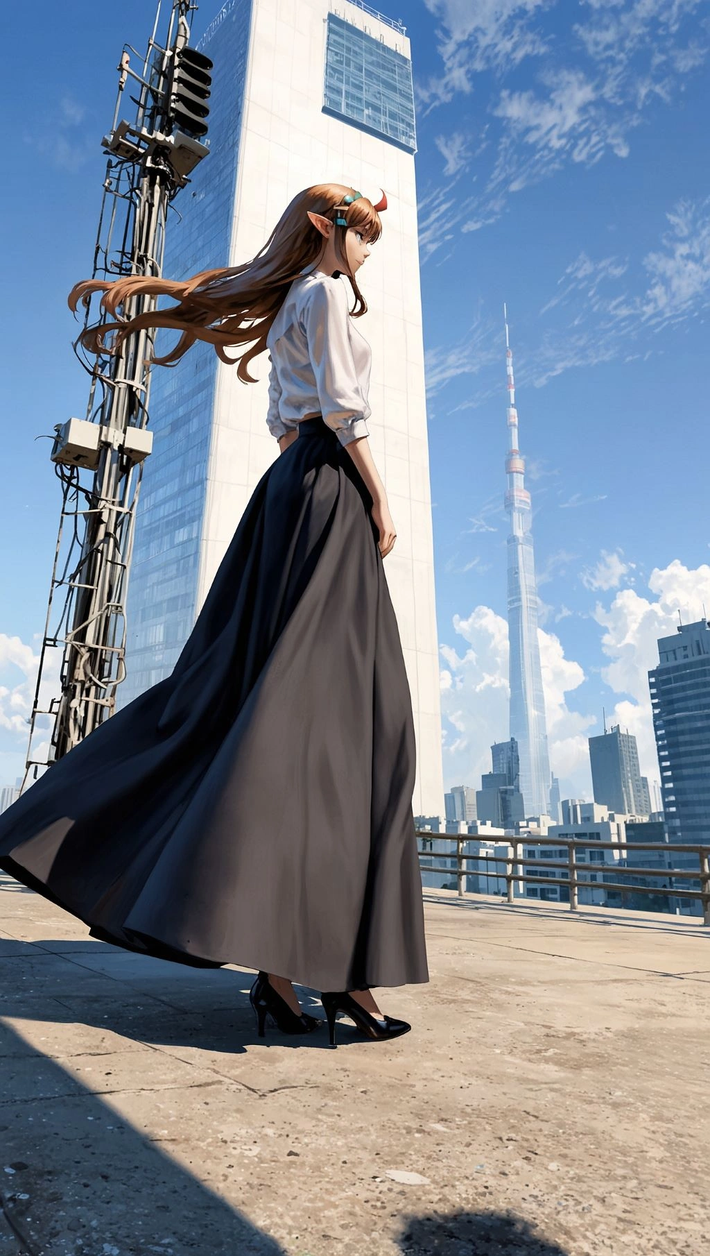 ロングスカートと高層ビル