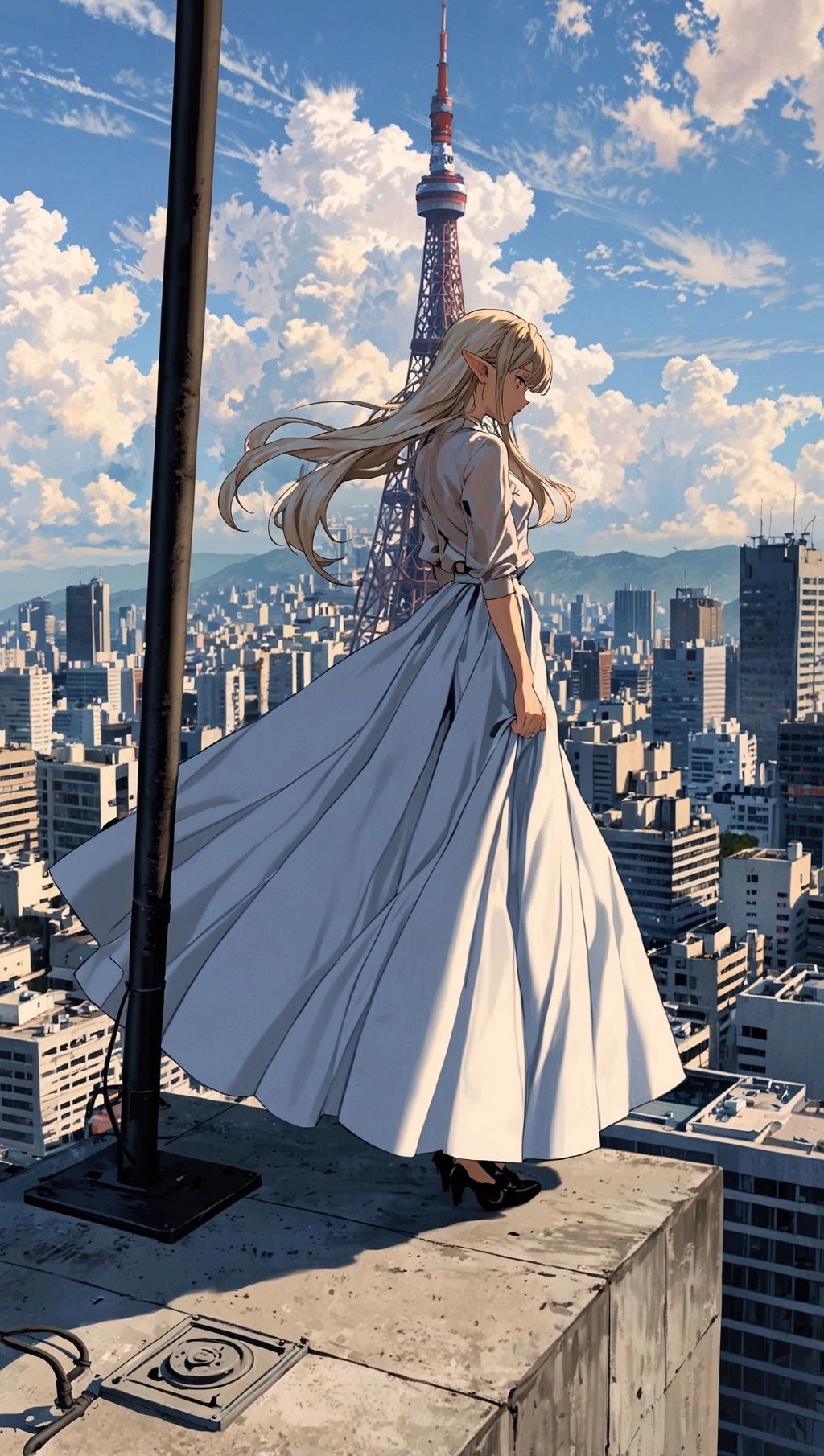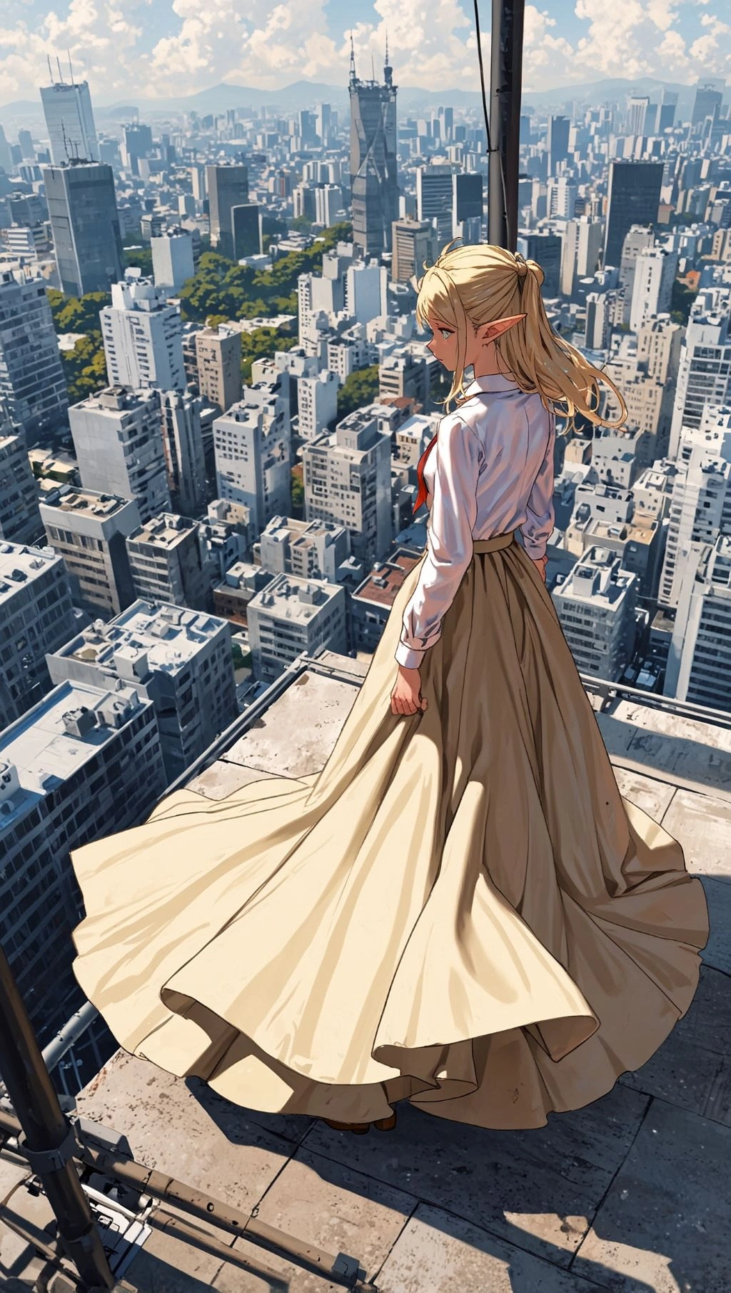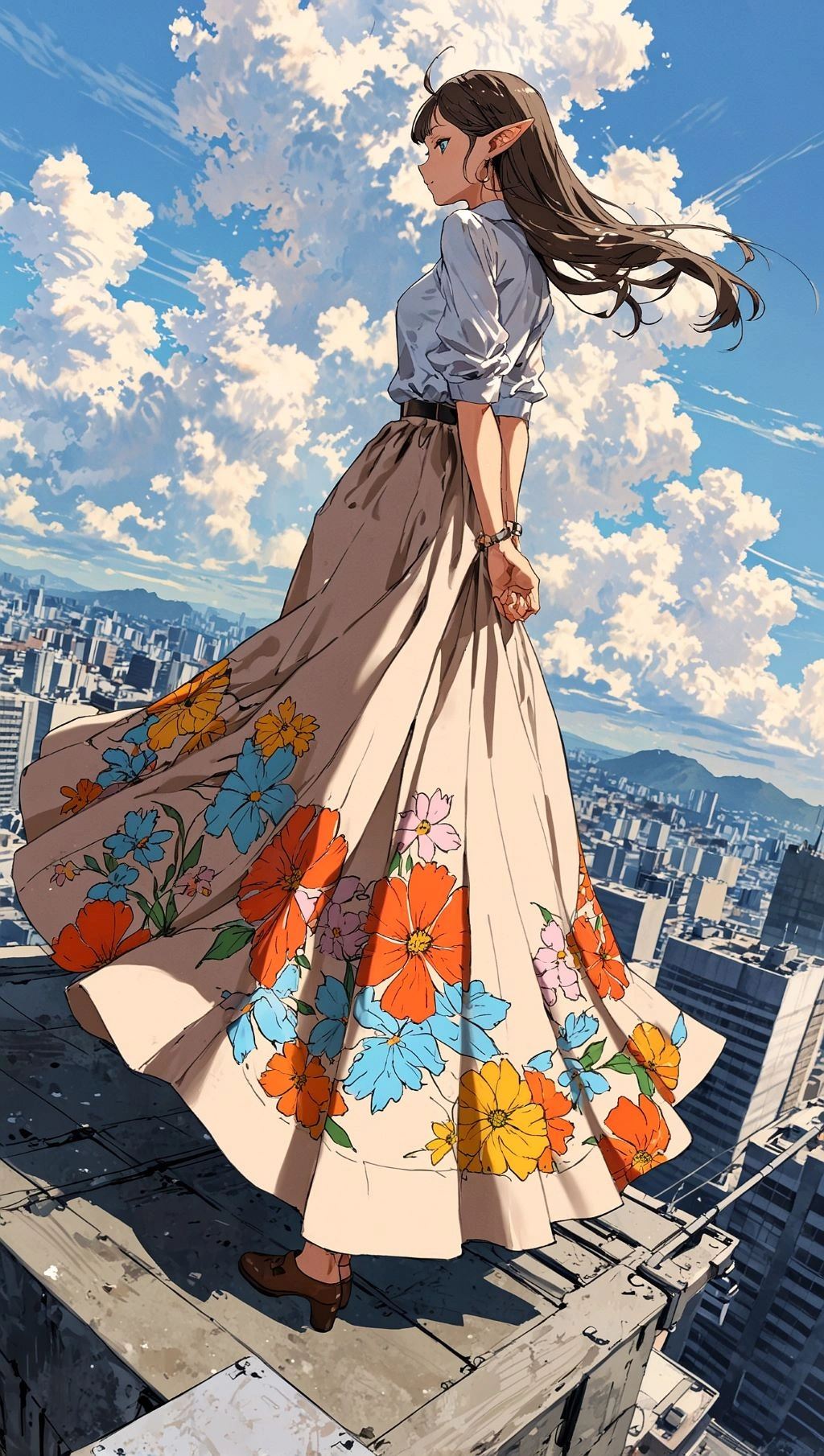 ロングスカートと高層ビル