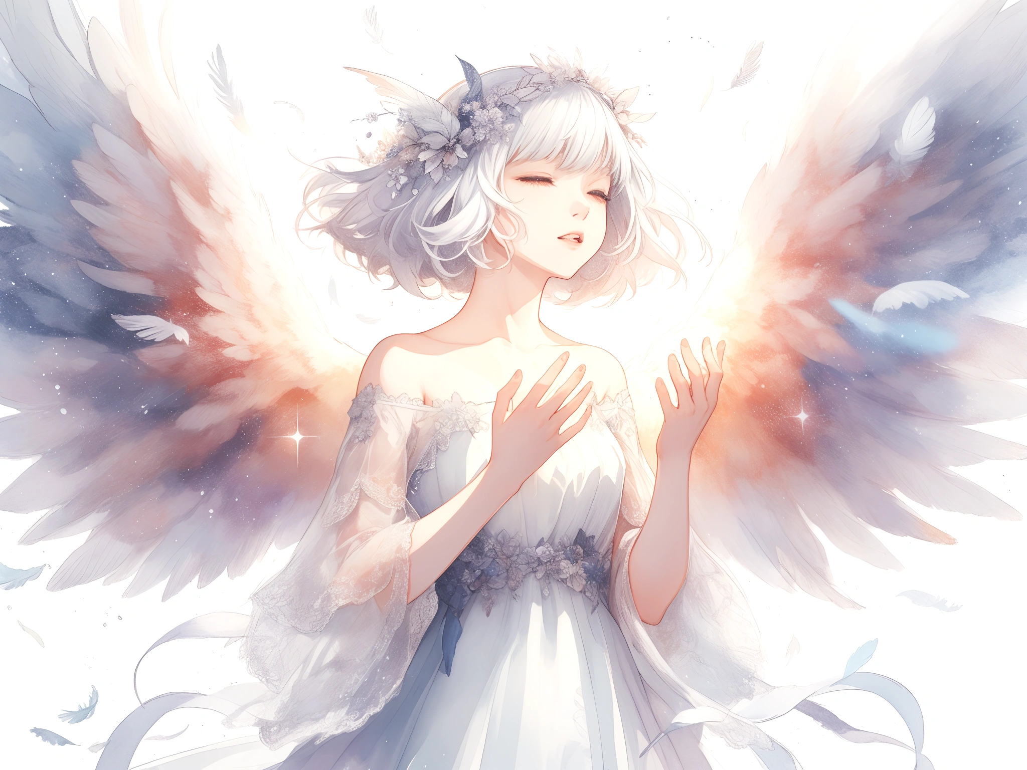 (masterpiece, best quality:1.3), illustration, (extream detailed), one girl, angel Descending