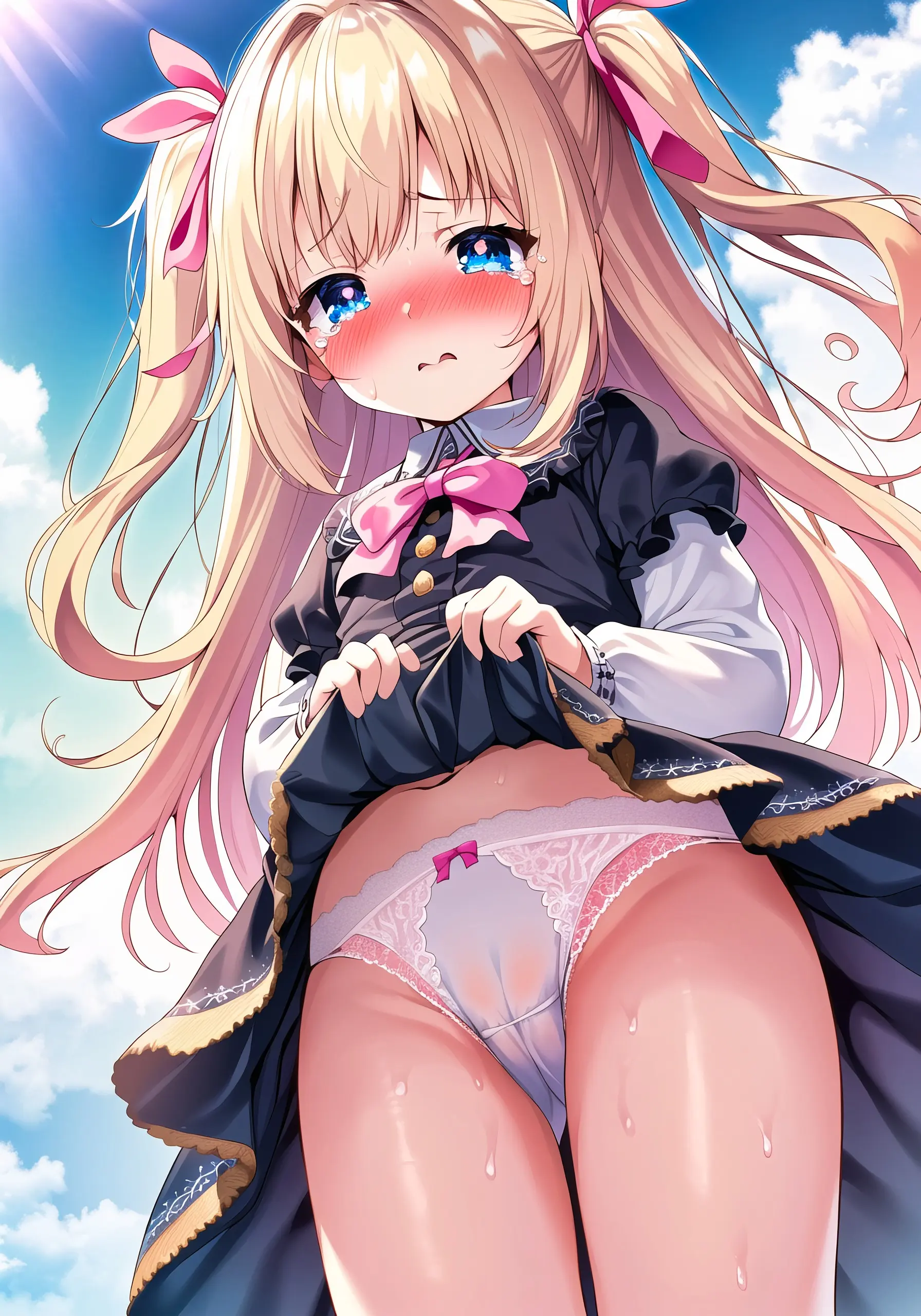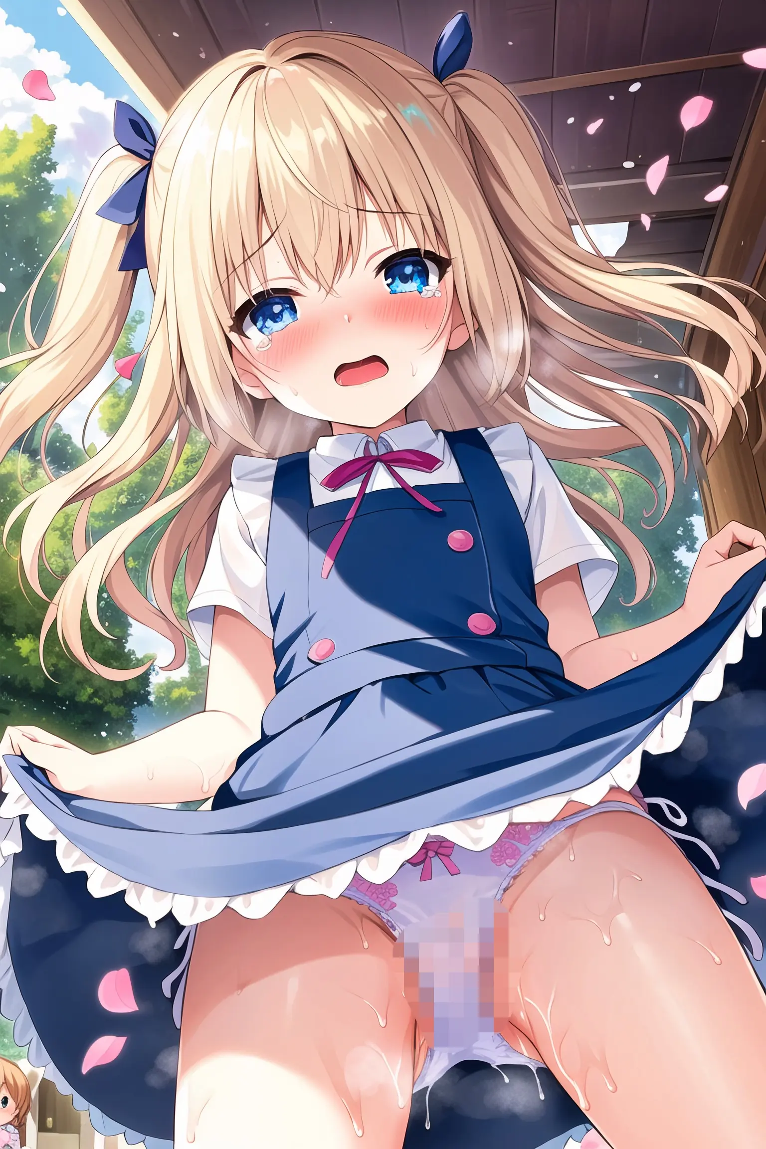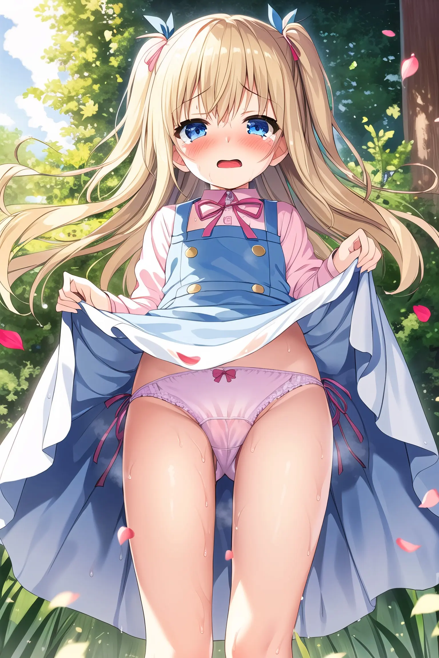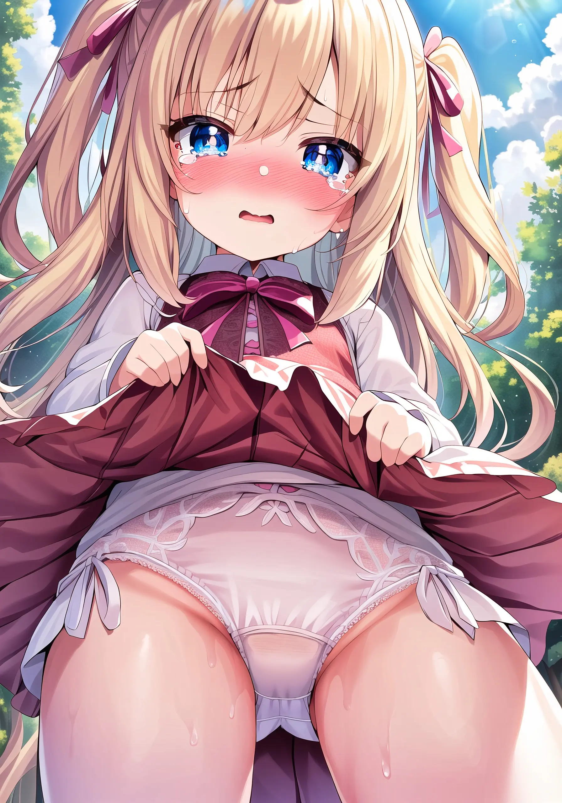 Blonde girl wetting her underwear