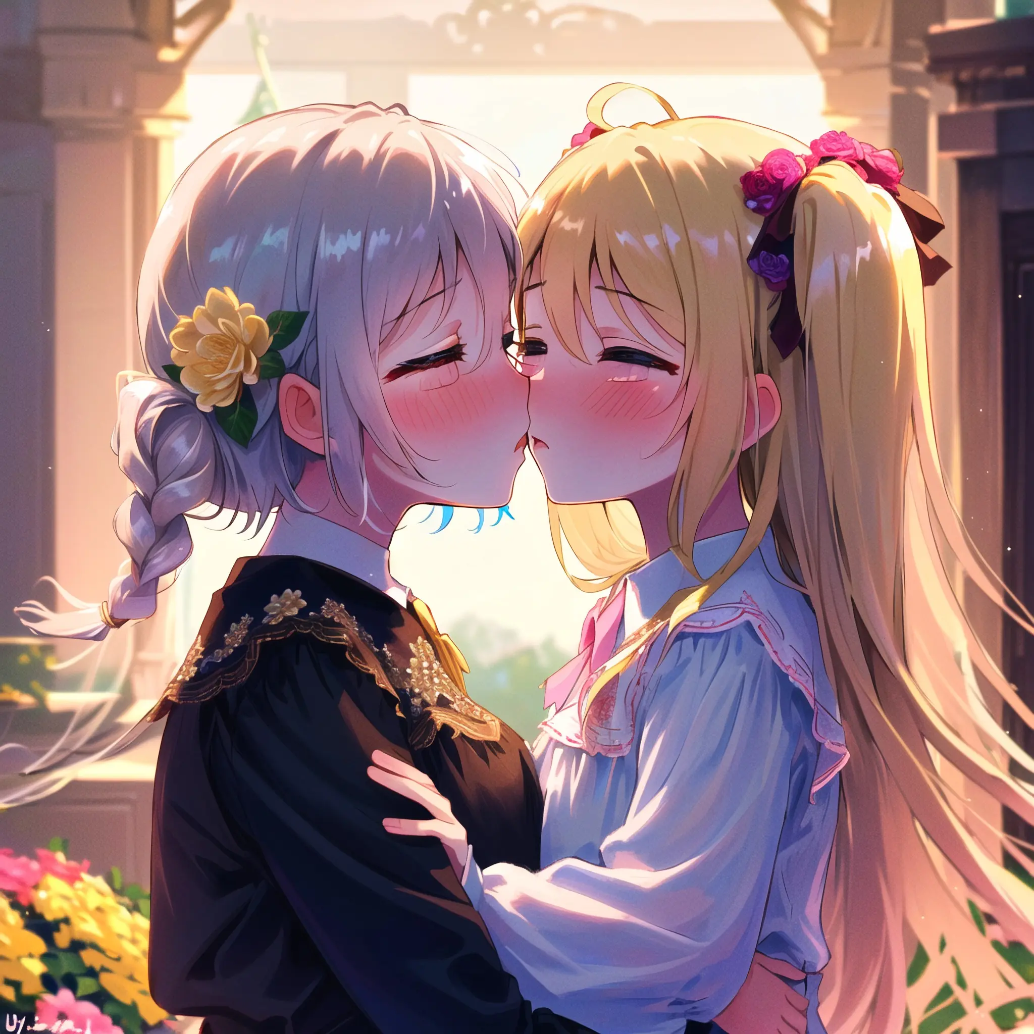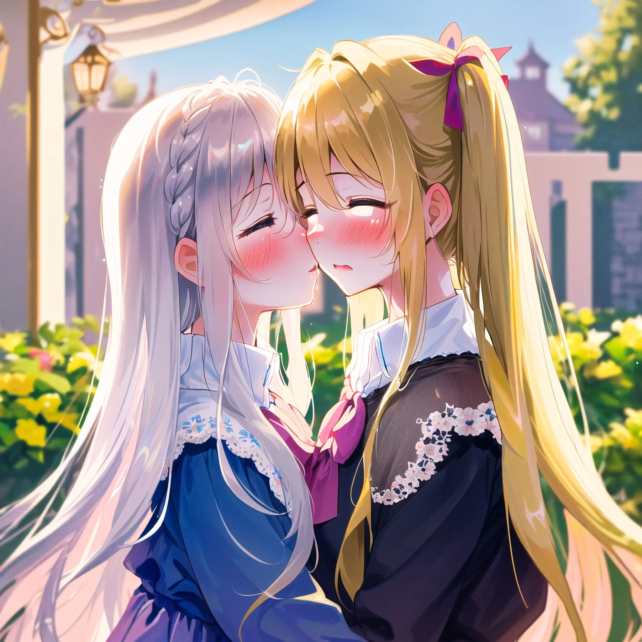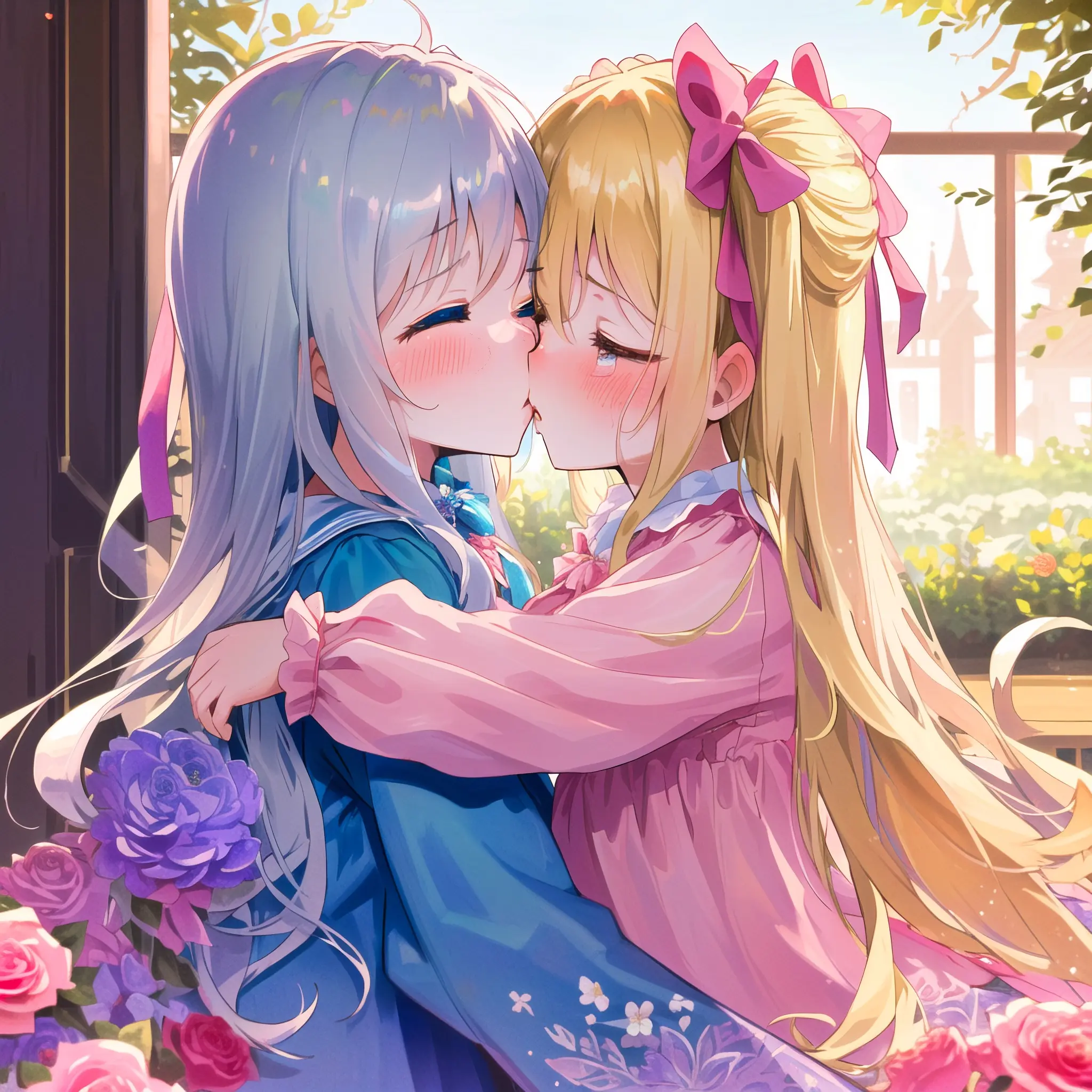 Blonde girl kissing her friend