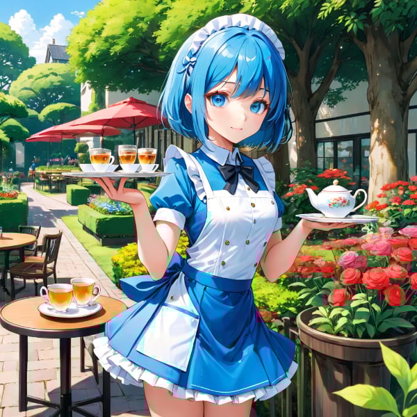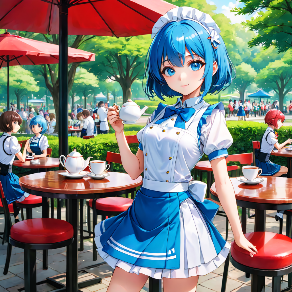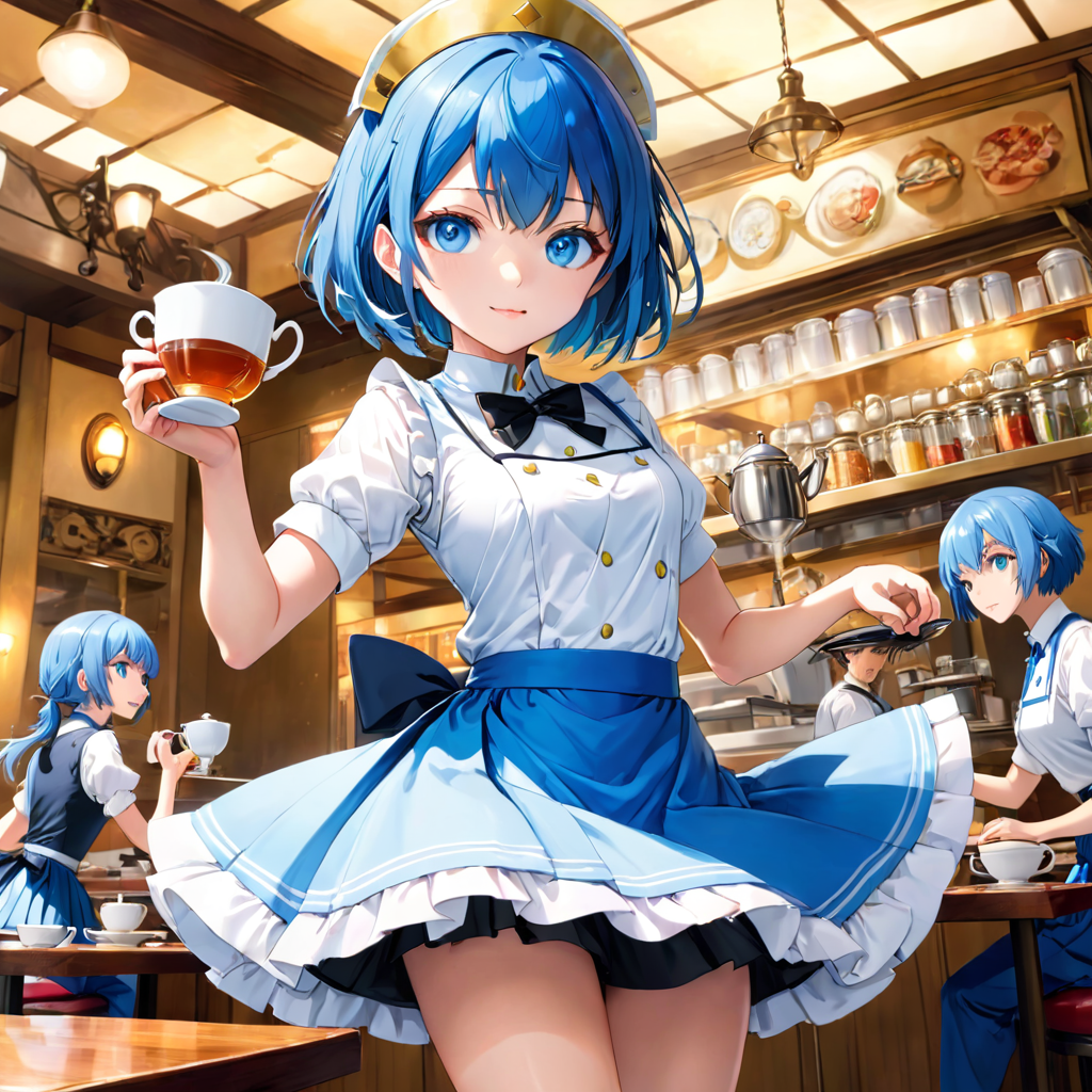 青髪のウエイトレスさん