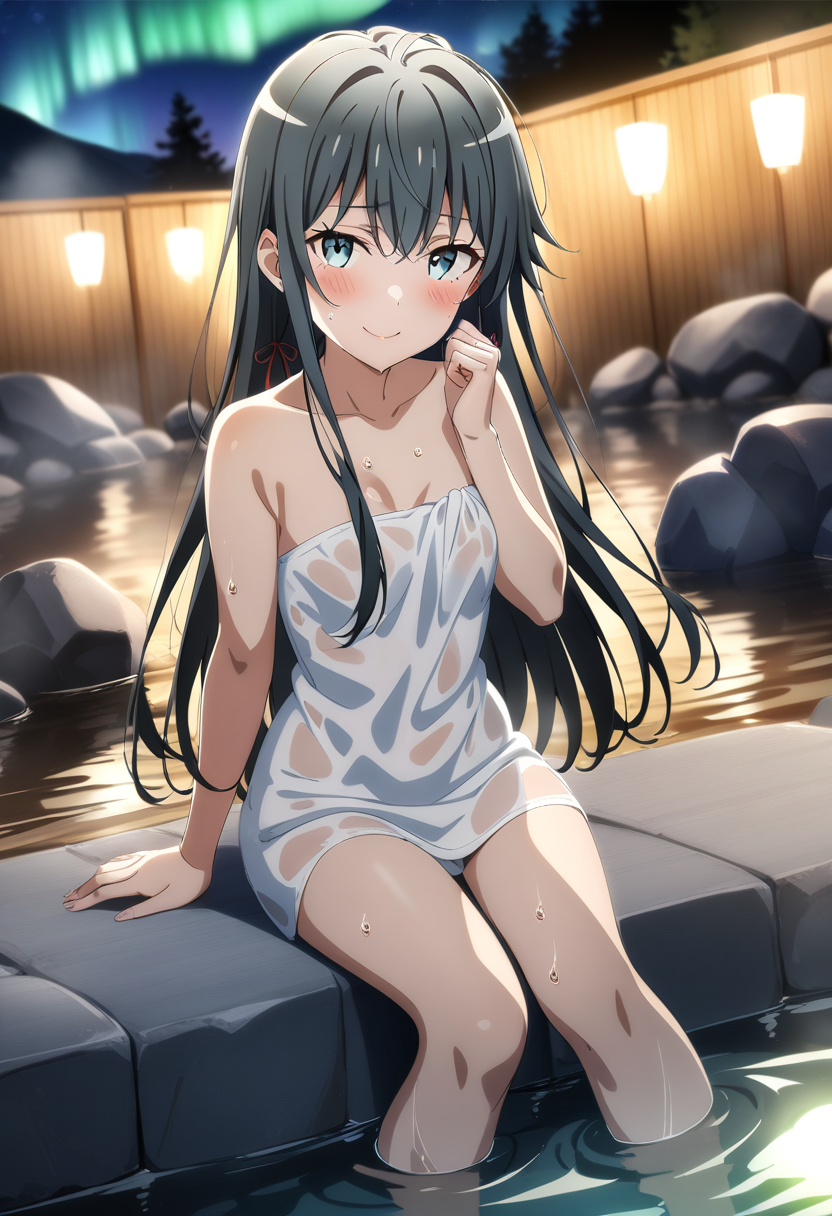 オーロラ🌌💎の見える温泉♨️で雪ノ下雪乃が入浴中😍💞