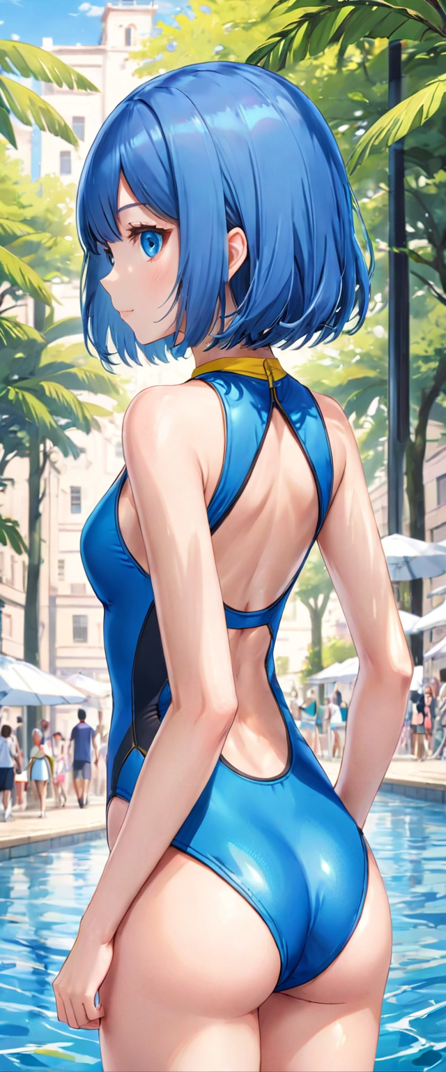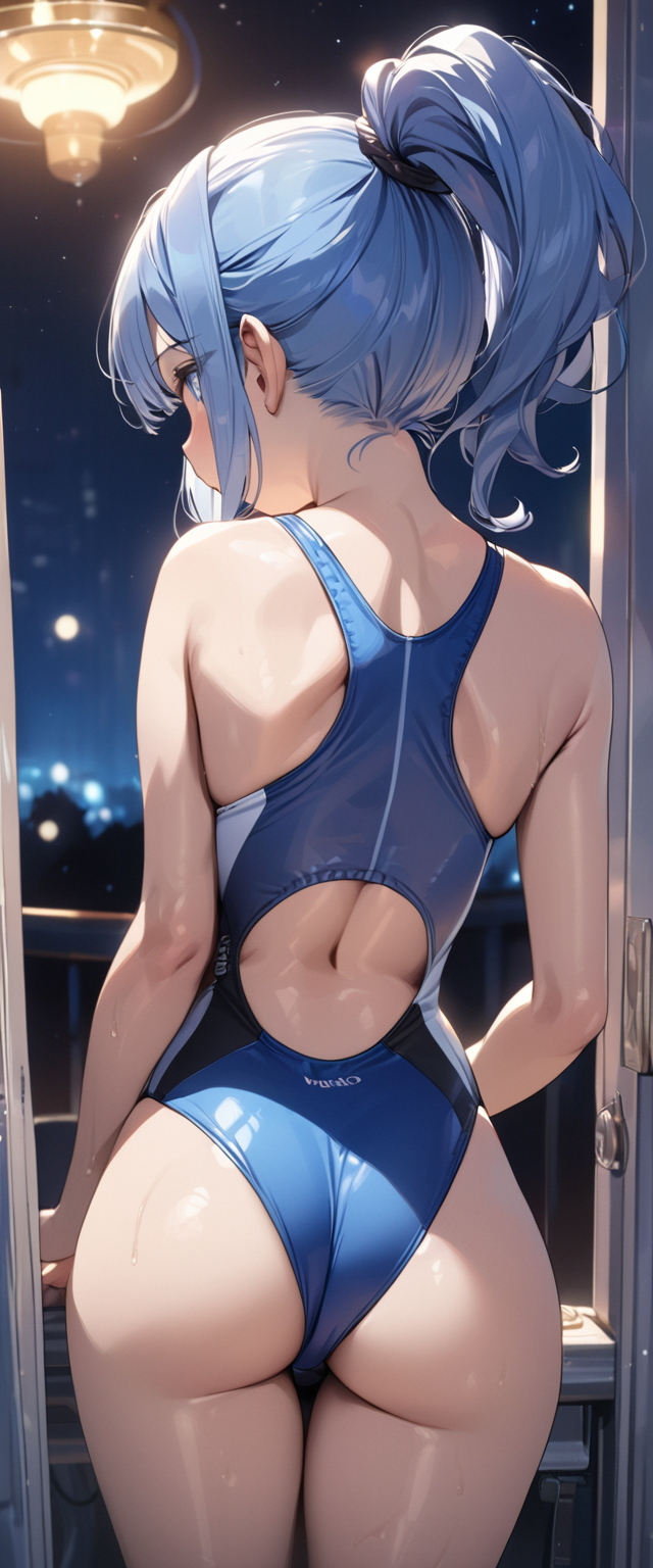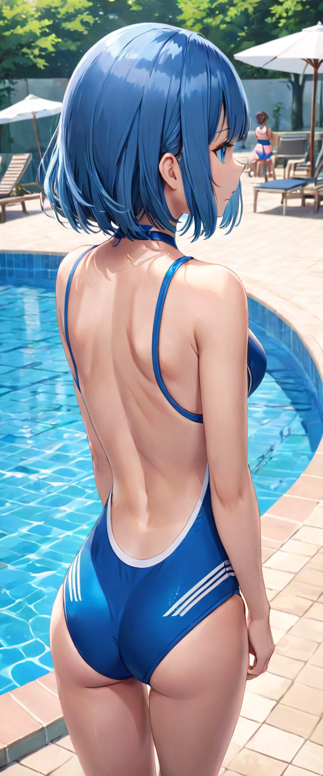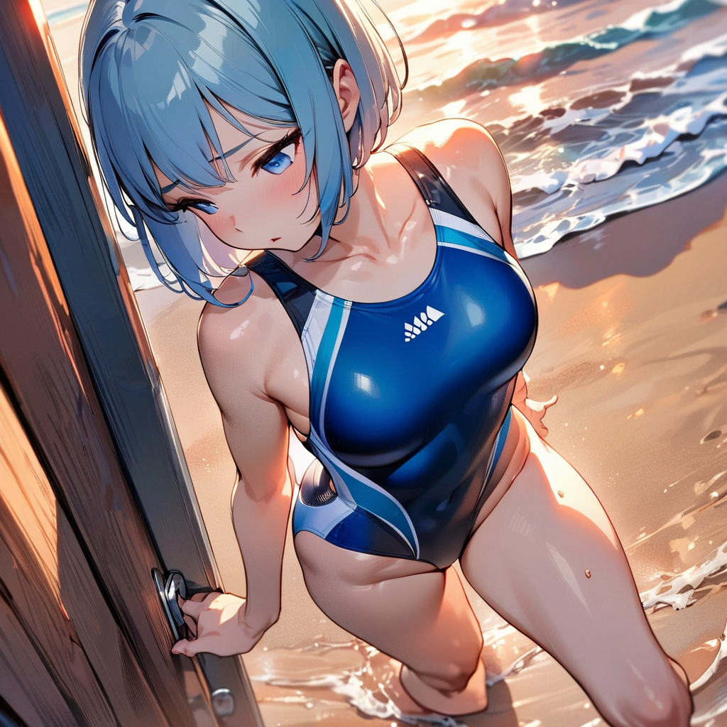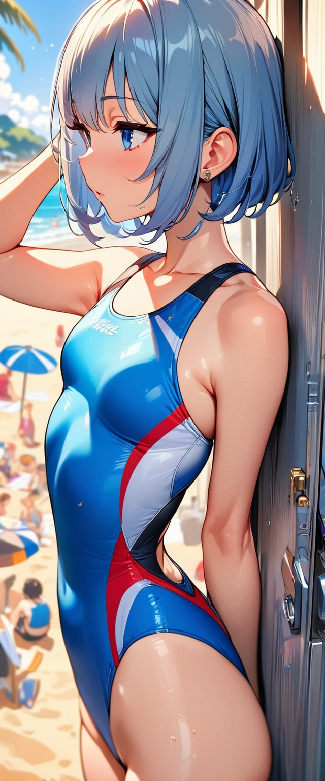 青髪の水着