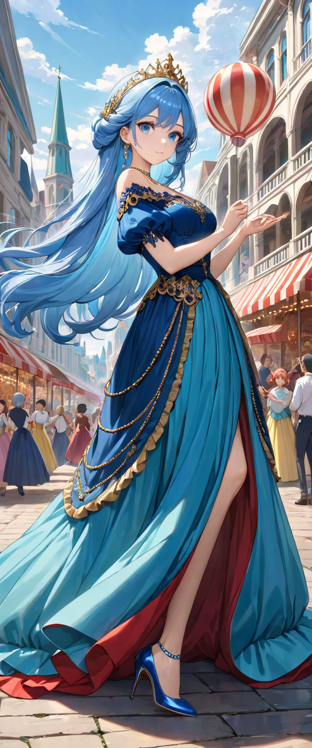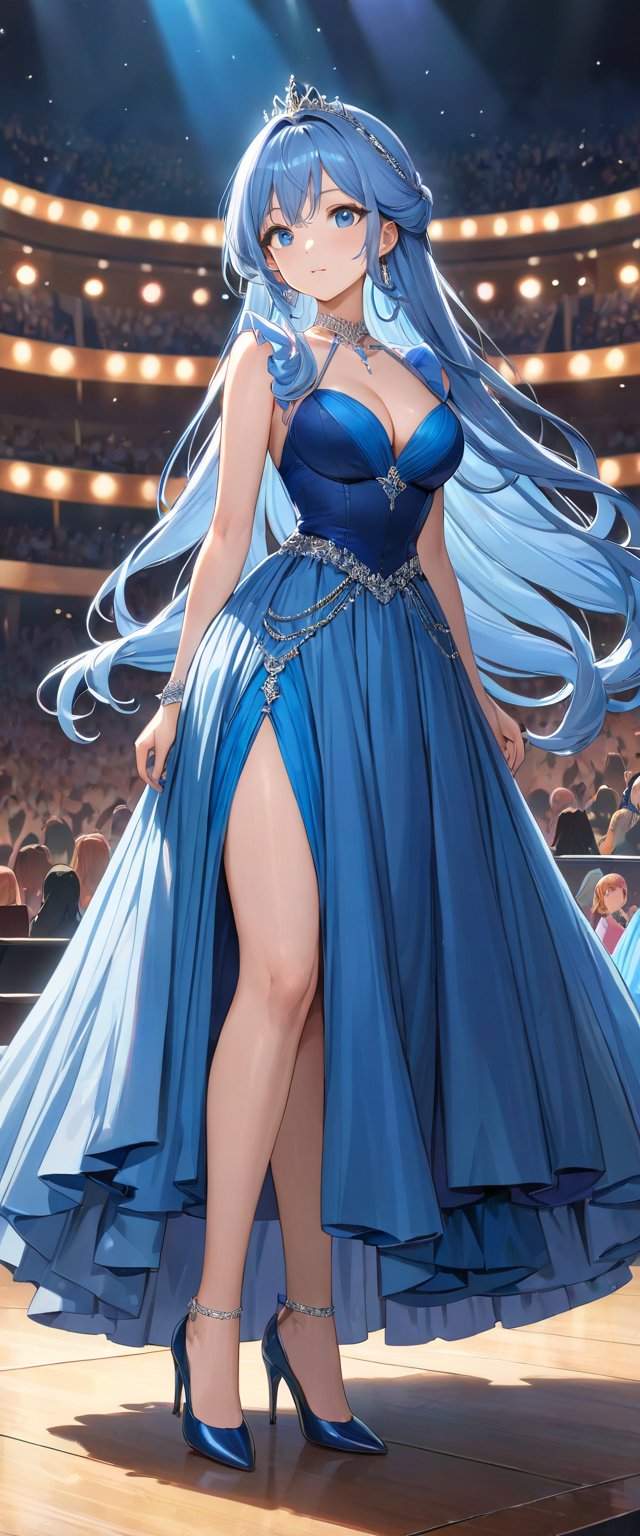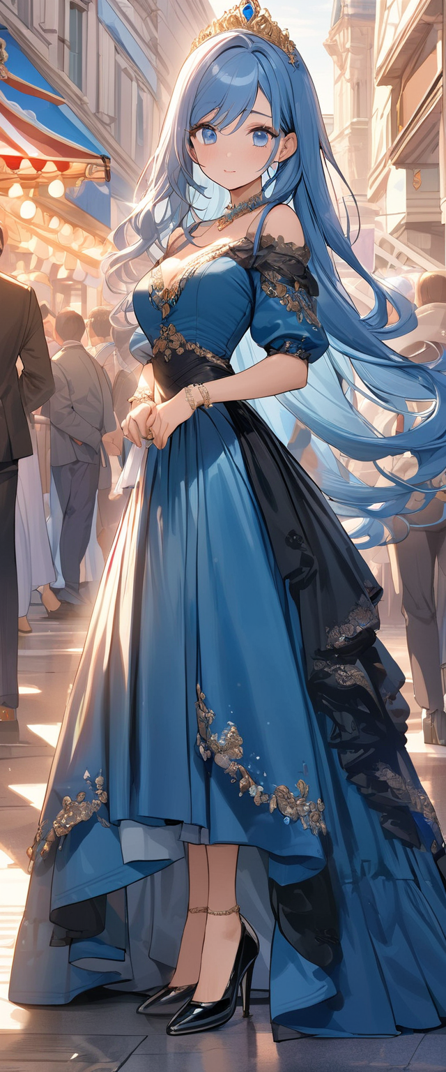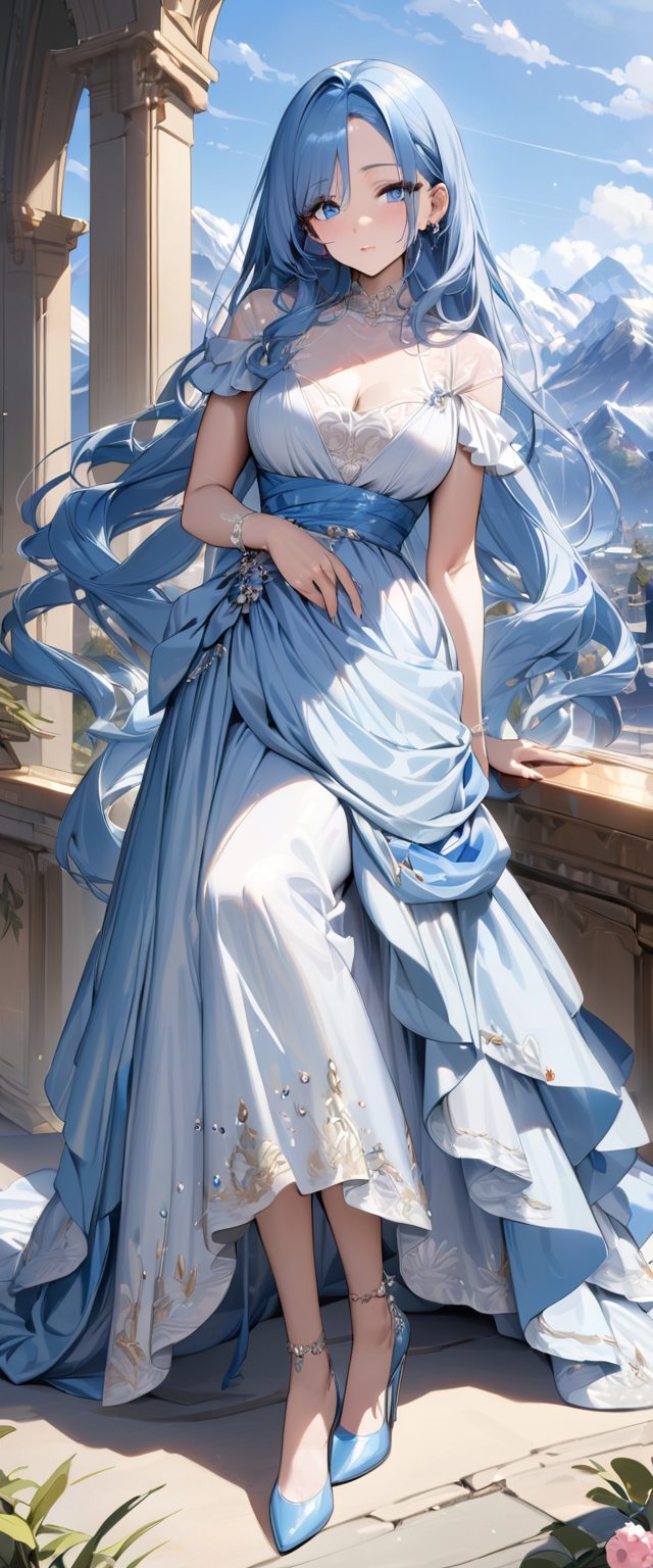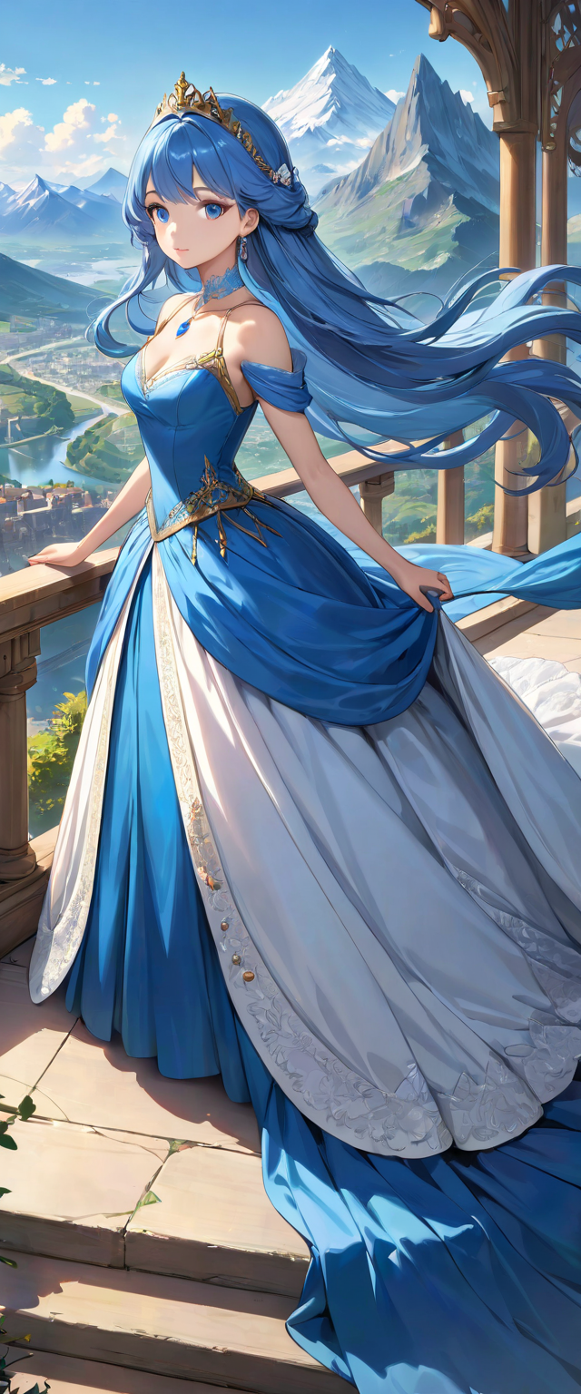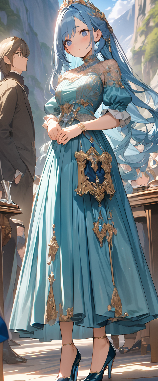 ロングドレスの青髪姫
