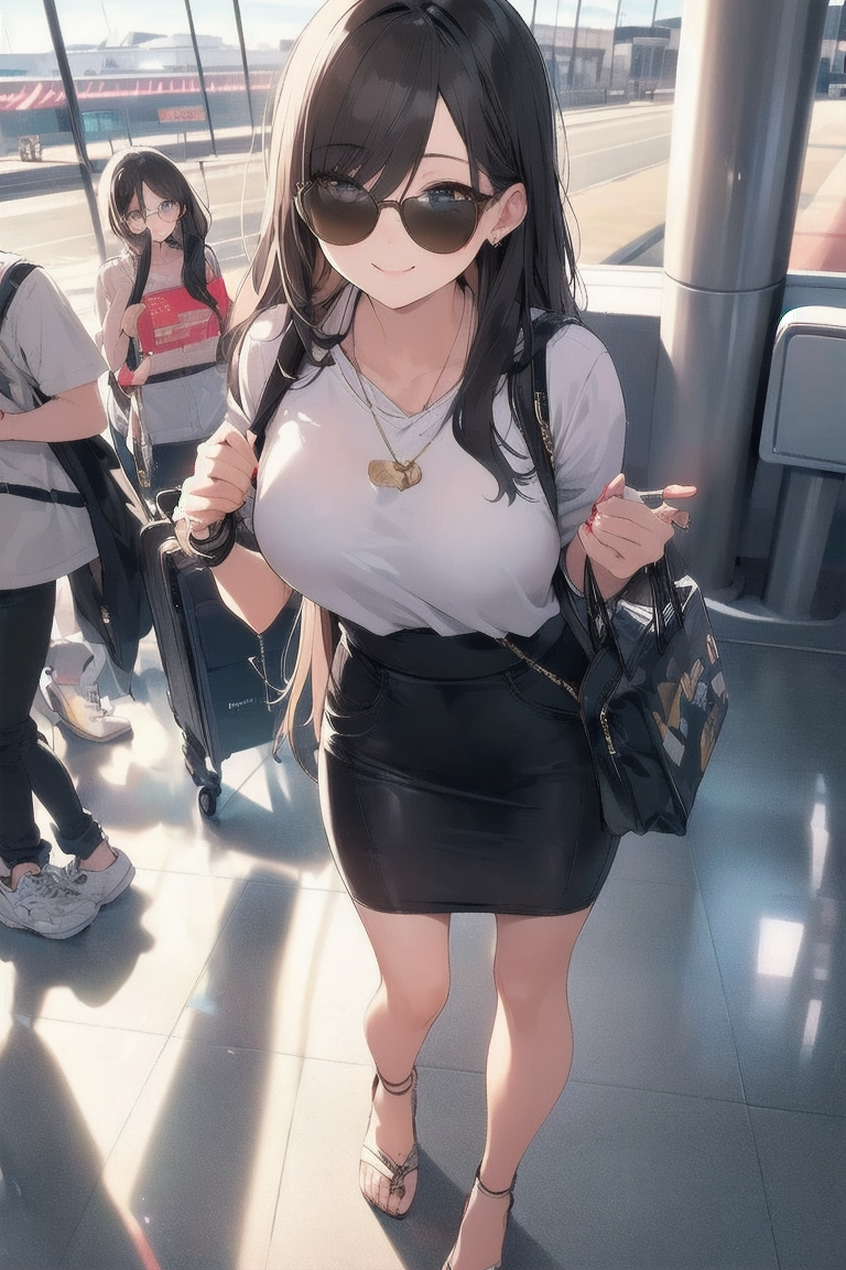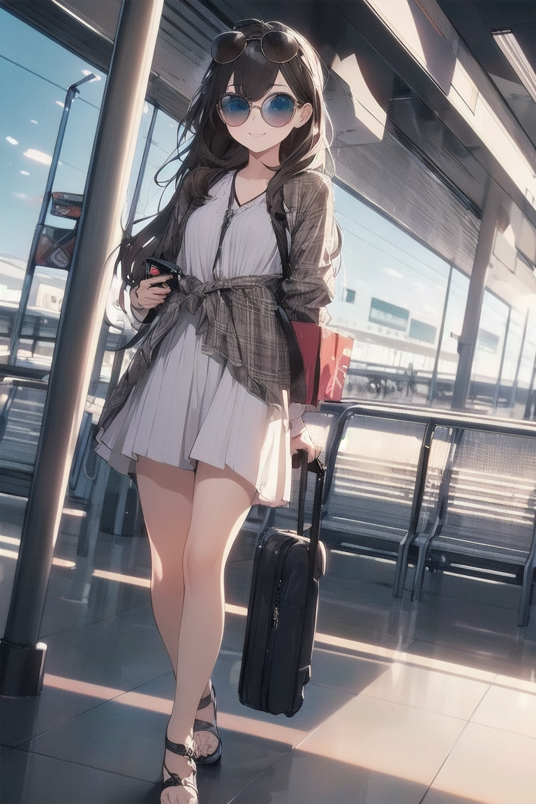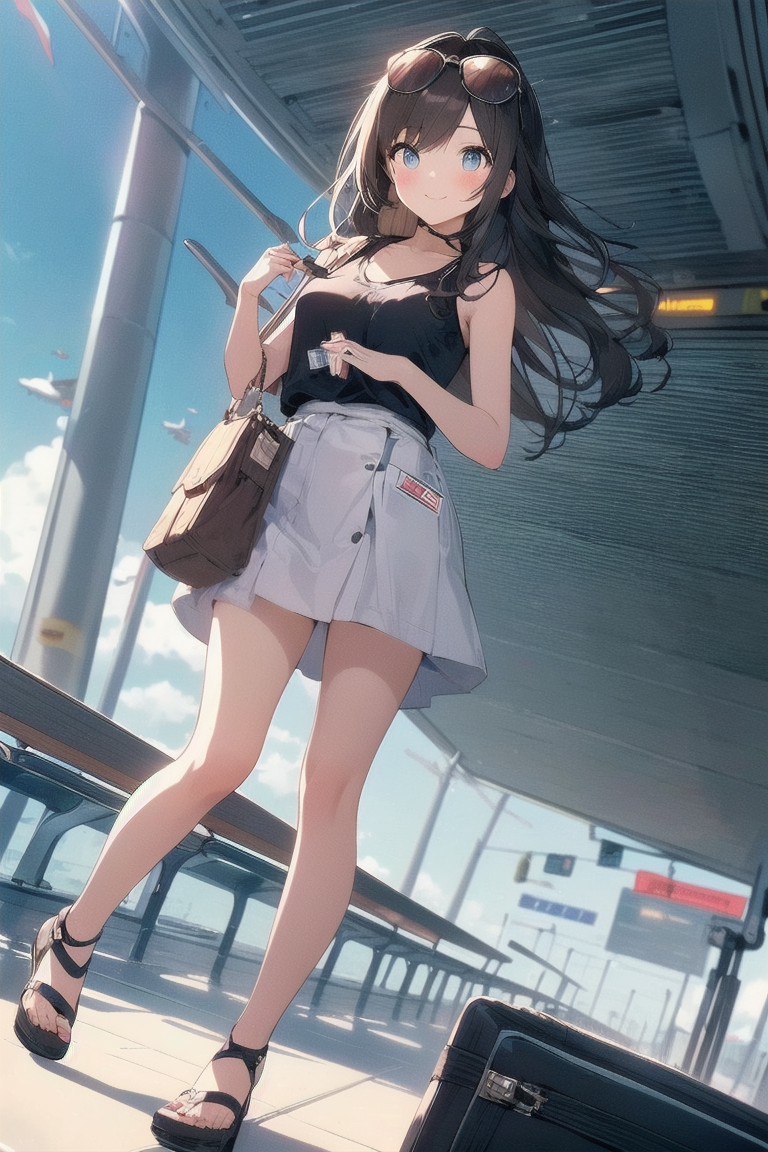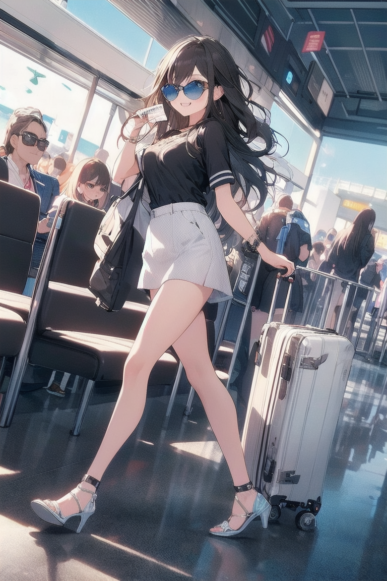 [{"keyword":"parameters","text":"Masterpiece, top quality, very detailed, animated style illustration, 1girl, cute girl, solo, full body, full body focus, (Dutch angle shot:1.1), Airport aisle, carrying case in tow, beautiful eyes, beautiful black hair, long hair, slim, slender, medium breast, beautiful eyes, (Resort fashion with a celebrity look:1.3), Big brown sunglasses, (looking up:1.2), seductive smile, (Holding ticket:1.3).nNegative prompt: EasyNegative, nsfw, nude, lowres, bad anatomy, bad hands, text error, ugly duplicate, morbid boken limb, incorrect limb, fusion finger, lose finger, multiple finger, multiple digit, fusion hand, lose leg, fused leg, multiple leg, bad feet, fewer digits, cropped normal quality, simple background, white background, abstract portrait jpeg, ((worst quality)), ((low quality)), bad-hands-5, (Open-breasted dress)nSteps: 20, Sampler: DPM++ 2M Karras, CFG scale: 7.0, Seed: 6, Size: 512x768, Model hash: 0e6294a0ba, Model: ChromaFT_v4, VAE hash: ab33ad55c6, VAE: clearvae_v23.safetensors, Denoising strength: 0.5, Clip skip: 2, RNG: CPU, Hires upscale: 1.5, Hires steps: 7, Hires upscaler: Lanczos, TI hashes: "EasyNegative: c74b4e810b03, bad-hands-5: aa7651be154c, EasyNegative: c74b4e810b03, bad-hands-5: aa7651be154c", Version: f0.0.17v1.8.0rc-latest-273-gb9705c58"}]
