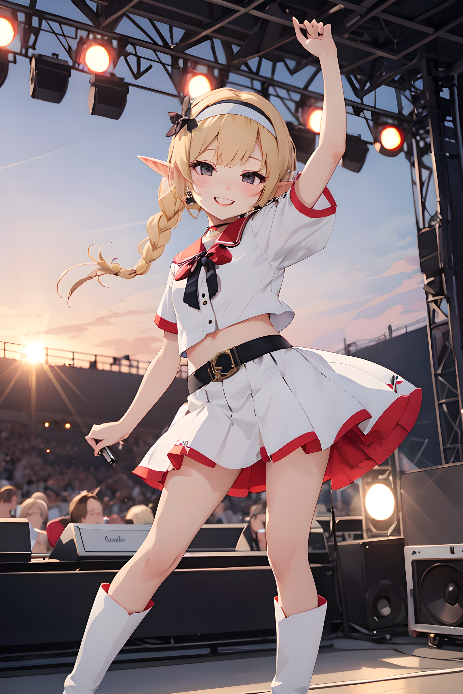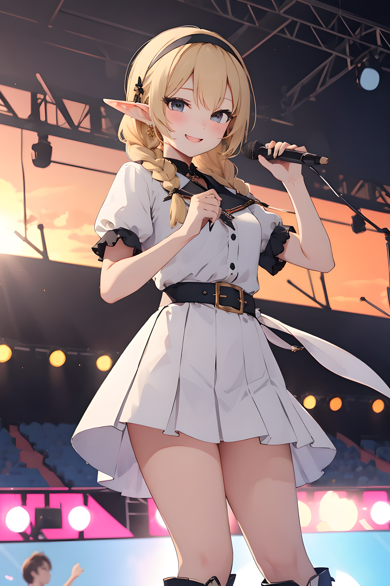[{"keyword":"parameters","text":"masterpiece, best quality, extremely detailed,1girl,longhair,blonde hair,braids,hairband,elf ears,short sleeve,white mini skirt,white puff sleeve short shirts,white long boots,black eyes,wink,tall,idol,kpop,ojou-sama,original character,my child,sunset,evening sun,summer,concert,music festival,stadium,full audience,smiling,dancing, , <lora:deluster1:1> <lora:eyecolle_platanus_v100:1>nNegative prompt: EasyNegative,nsfw, nude, bad-hands-5,badhandv4,text,watermark,negativeXL_D,Mayng,kemomiminSteps: 20, Sampler: DPM++ 2M Karras, CFG scale: 7.0, Seed: 3265407857, Size: 512x768, Model hash: 0fd9832365, Model: bluePencil_ex, VAE hash: ab33ad55c6, VAE: vae-ft-mse-840000-ema-pruned.safetensors, Denoising strength: 0.5, Clip skip: 2, RNG: CPU, Hires upscale: 1.5, Hires steps: 7, Hires upscaler: Lanczos, Lora hashes: "deluster1: 060a7c7940a6, eyecolle_platanus_v100: 506f53b5c865", TI hashes: "EasyNegative: c74b4e810b03, bad-hands-5: aa7651be154c, badhandv4: 5e40d722fc3d, EasyNegative: c74b4e810b03, bad-hands-5: aa7651be154c, badhandv4: 5e40d722fc3d", Version: f0.0.17v1.8.0rc-latest-273-gb9705c58"},{"keyword":"postprocessing","text":"Postprocess upscale by: 2.0, Postprocess upscaler: R-ESRGAN 4x+"}]
