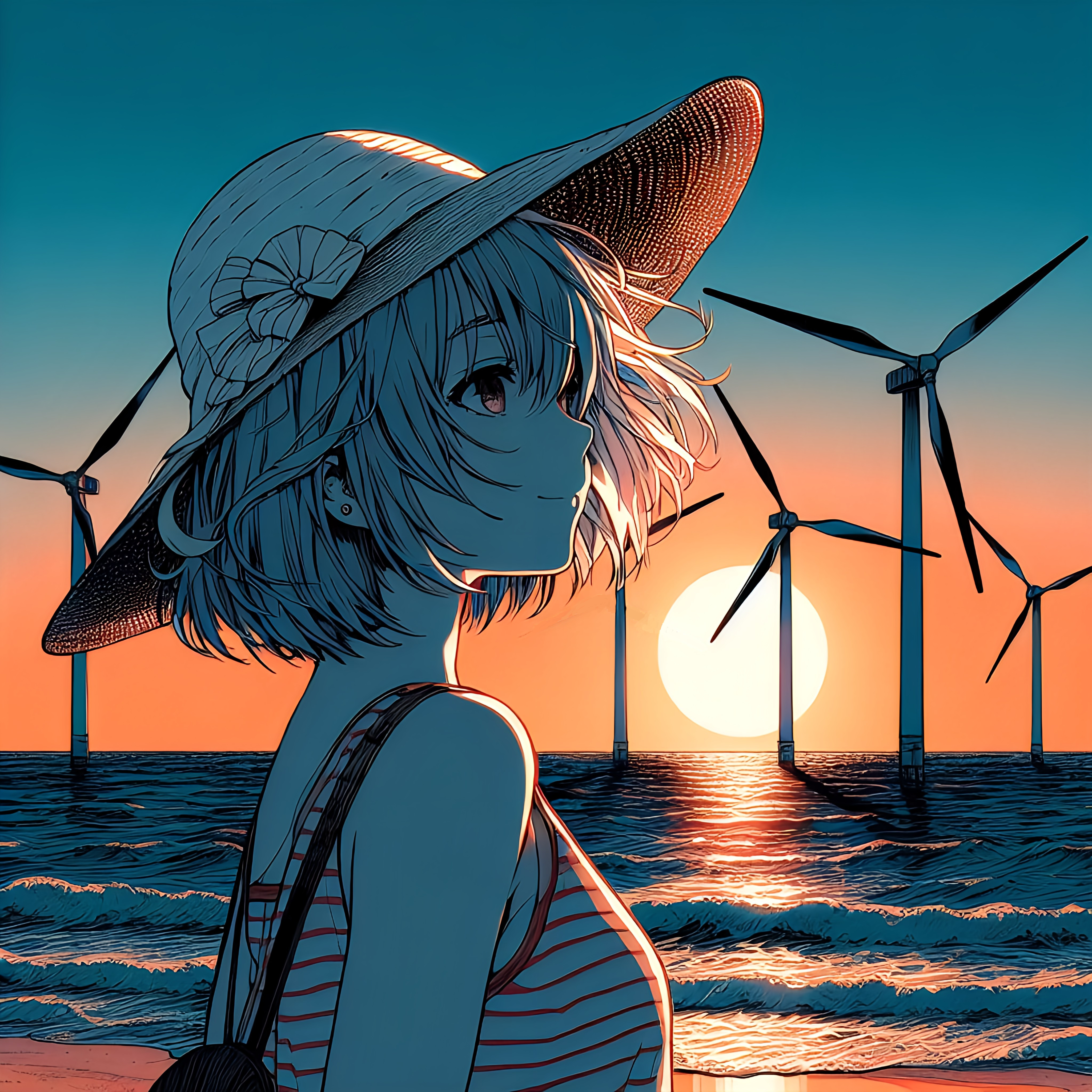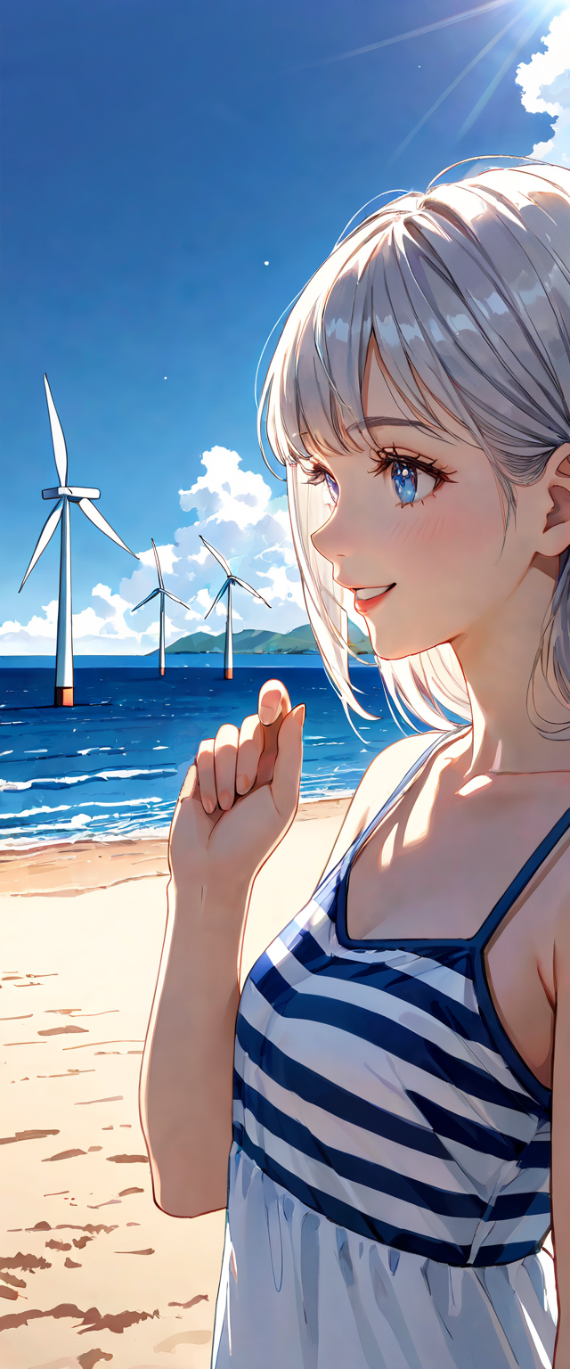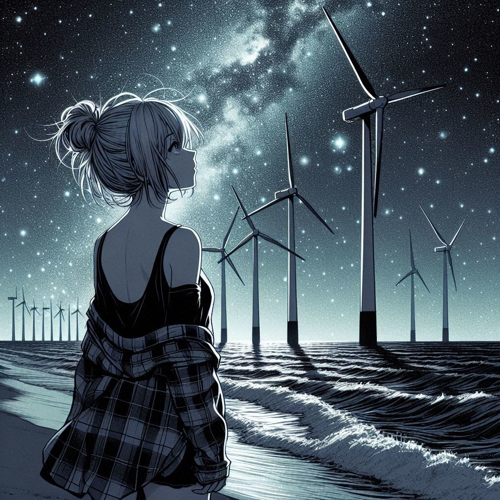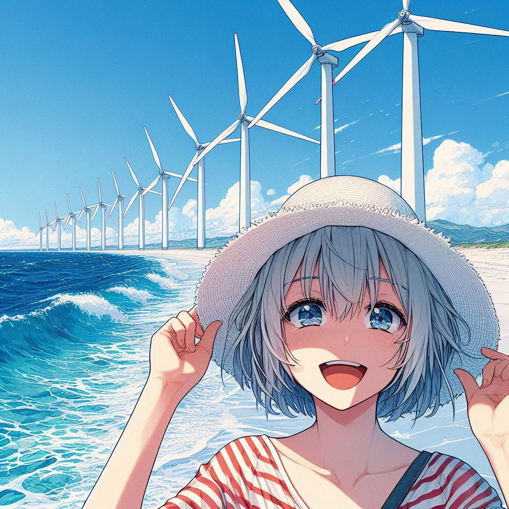 プロペラが南風を受けて回っている絵を生成しようとしたのですが、プロペラが吹き飛ぶ絵しか出ないので、諦めて無風w