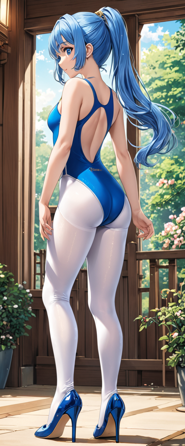 白ストッキング&競泳水着