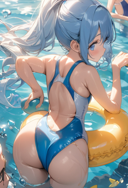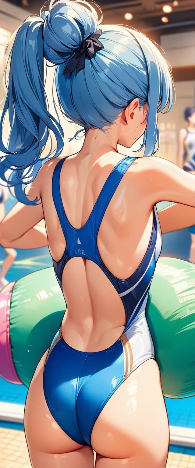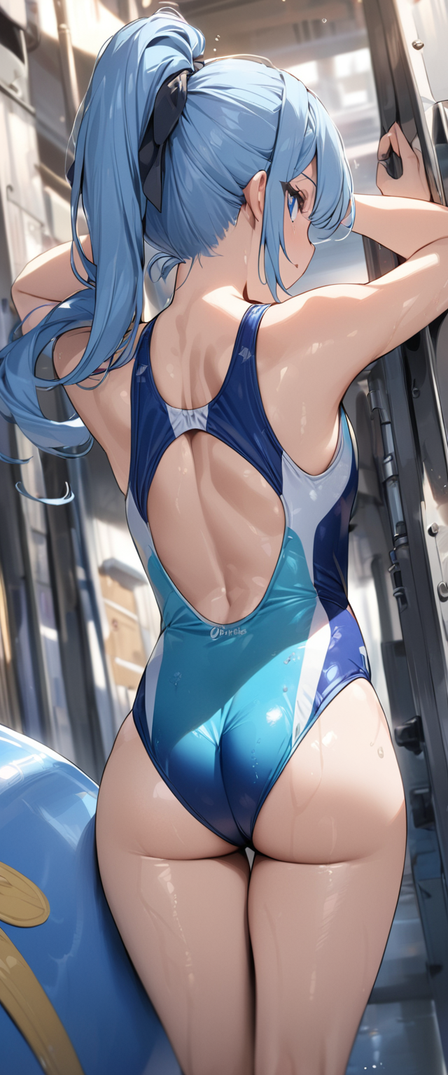 Blue hair's competitive swimsuit