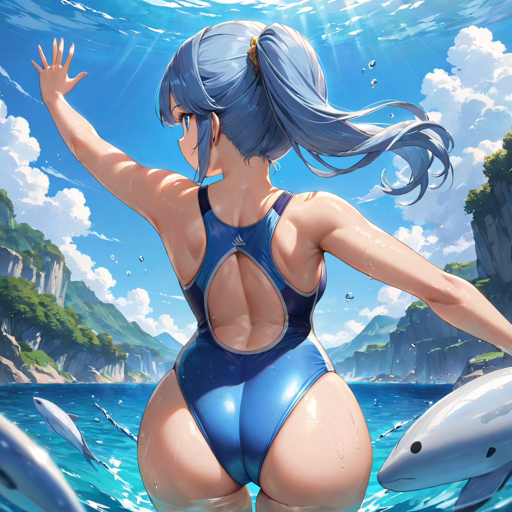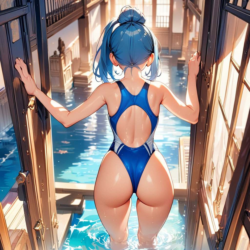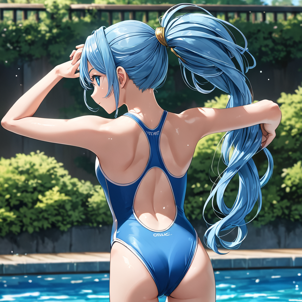Blue hair's competitive swimsuit