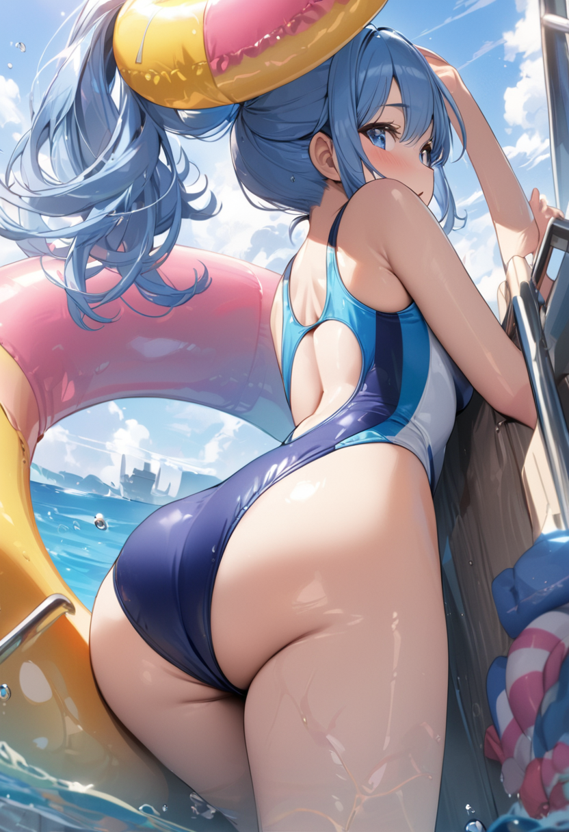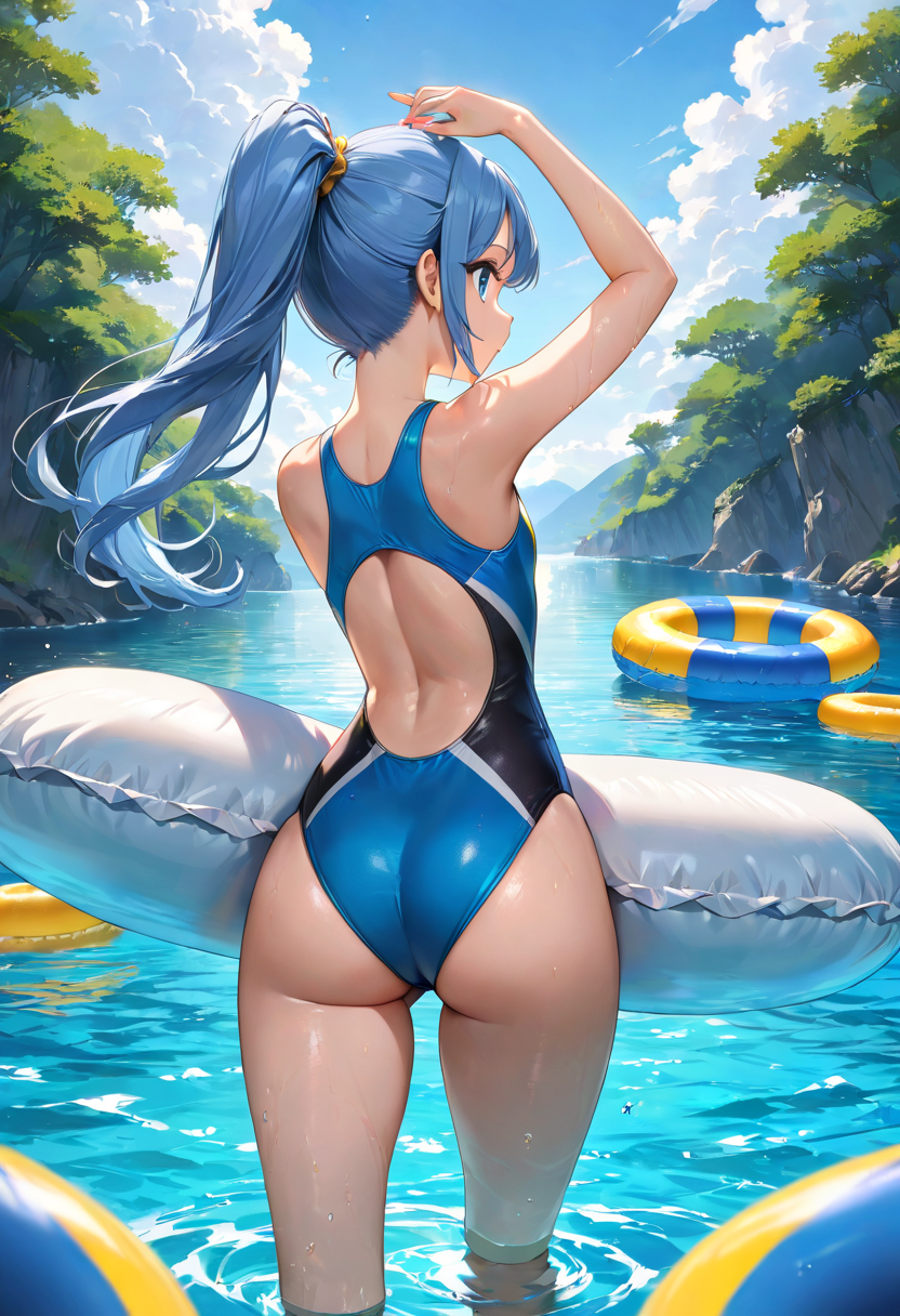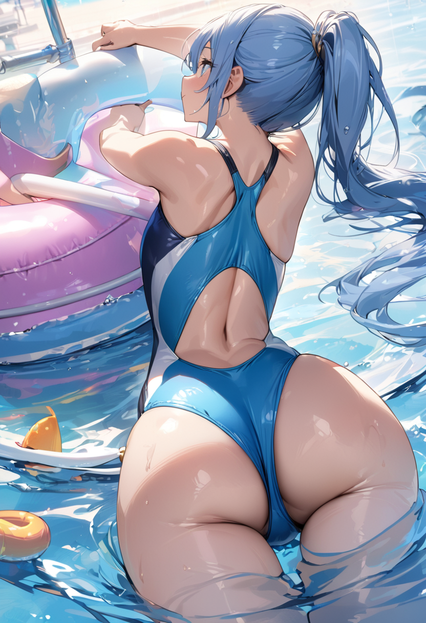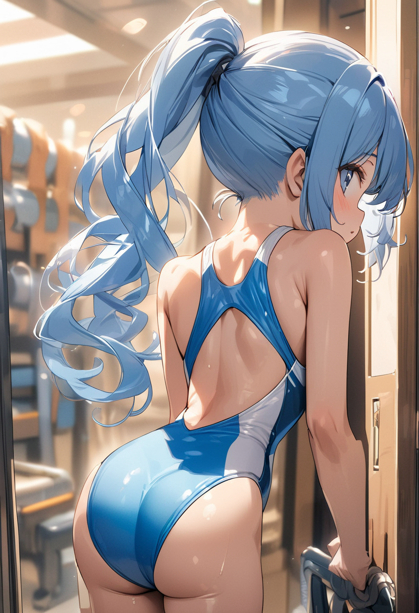 A blue-haired guy with an attractive back