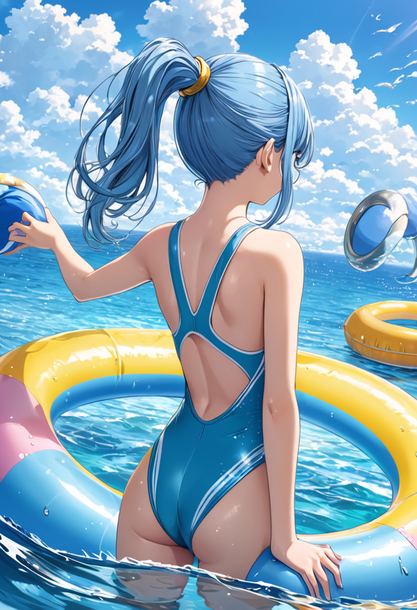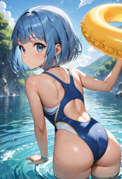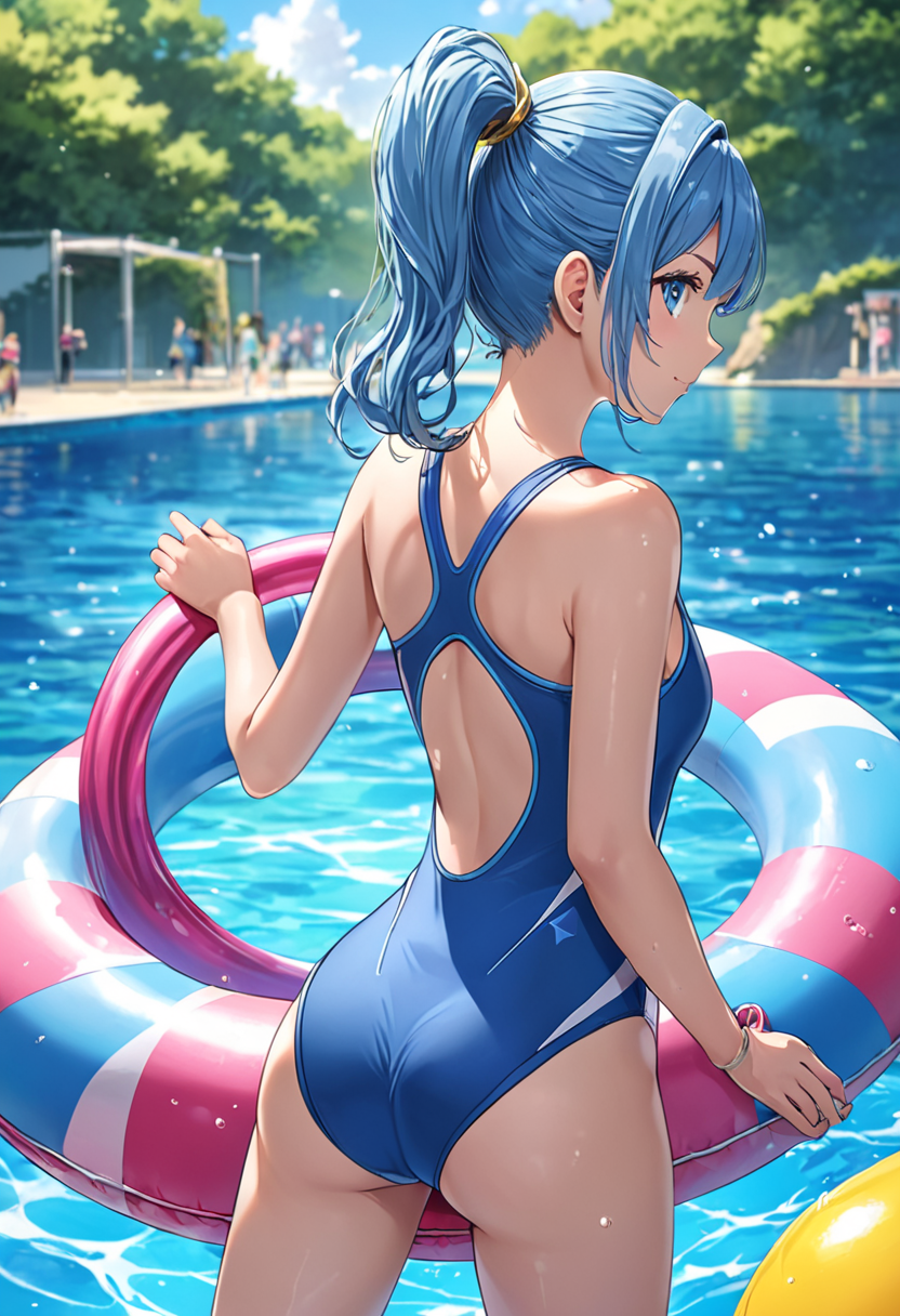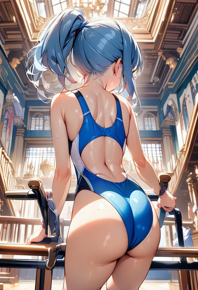 A blue-haired guy with an attractive back