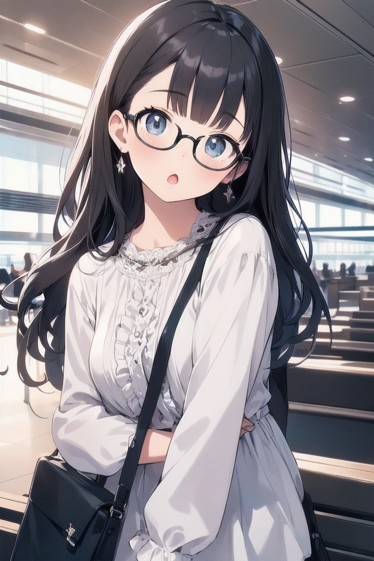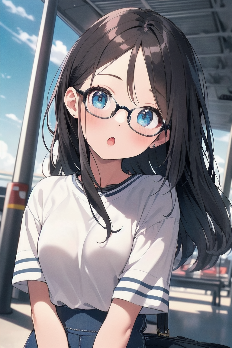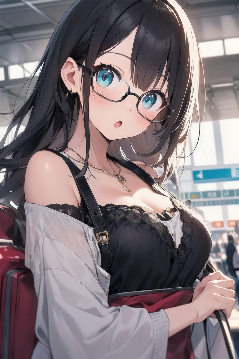 [{"keyword":"parameters","text":"Masterpiece, top quality, very detailed, animated style illustration, 1girl, cute girl, solo, upper body, upper body focus, (Dutch angle shot:1.1), Airport aisle, carrying case in tow, beautiful eyes, beautiful black hair, long hair, slim, slender, medium breast, beautiful eyes, (Resort fashion with a celebrity look:1.3), glasses, (head tilt:1.6), (:o:1.7), (a strange look:1.2).nNegative prompt: EasyNegative, nsfw, nude, lowres, bad anatomy, bad hands, text error, ugly duplicate, morbid boken limb, incorrect limb, fusion finger, lose finger, multiple finger, multiple digit, fusion hand, lose leg, fused leg, multiple leg, bad feet, fewer digits, cropped normal quality, simple background, white background, abstract portrait jpeg, ((worst quality)), ((low quality)), bad-hands-5, (Open-breasted dress), (black outfit)nSteps: 20, Sampler: DPM++ 2M Karras, CFG scale: 7.0, Seed: 10, Size: 512x768, Model hash: 0e6294a0ba, Model: ChromaFT_v4, VAE hash: ab33ad55c6, VAE: clearvae_v23.safetensors, Denoising strength: 0.5, Clip skip: 2, RNG: CPU, Hires upscale: 1.5, Hires steps: 7, Hires upscaler: Lanczos, TI hashes: "EasyNegative: c74b4e810b03, bad-hands-5: aa7651be154c, EasyNegative: c74b4e810b03, bad-hands-5: aa7651be154c", Version: f0.0.17v1.8.0rc-latest-273-gb9705c58"}]