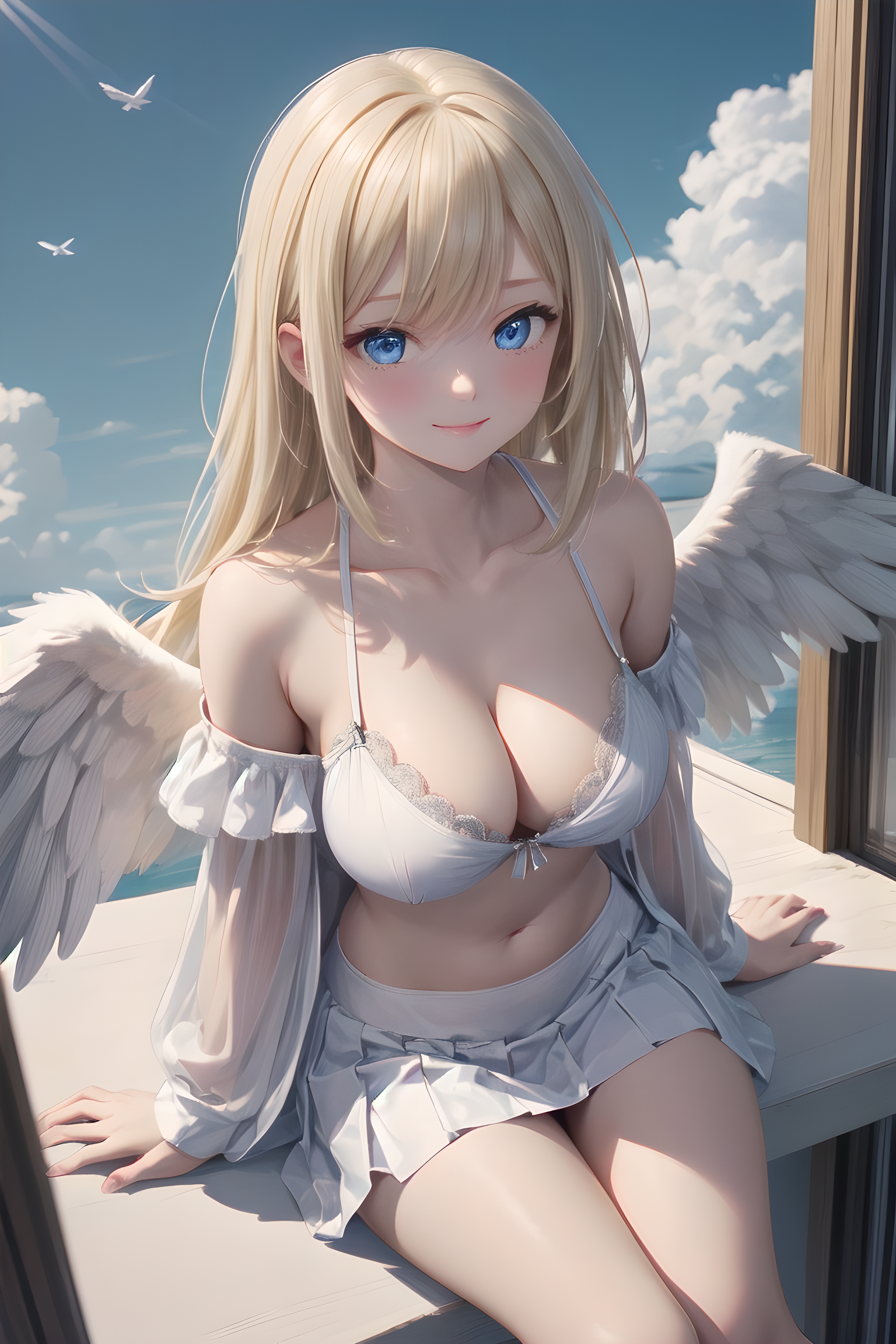 (masterpiece, best quality:1.3), illustration, (extream detailed), one girl, angel Descending