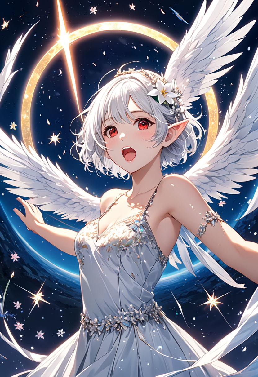 (masterpiece, best quality:1.3), illustration, (extream detailed), one girl, angel Descending