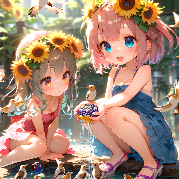ひまわりと小鳥