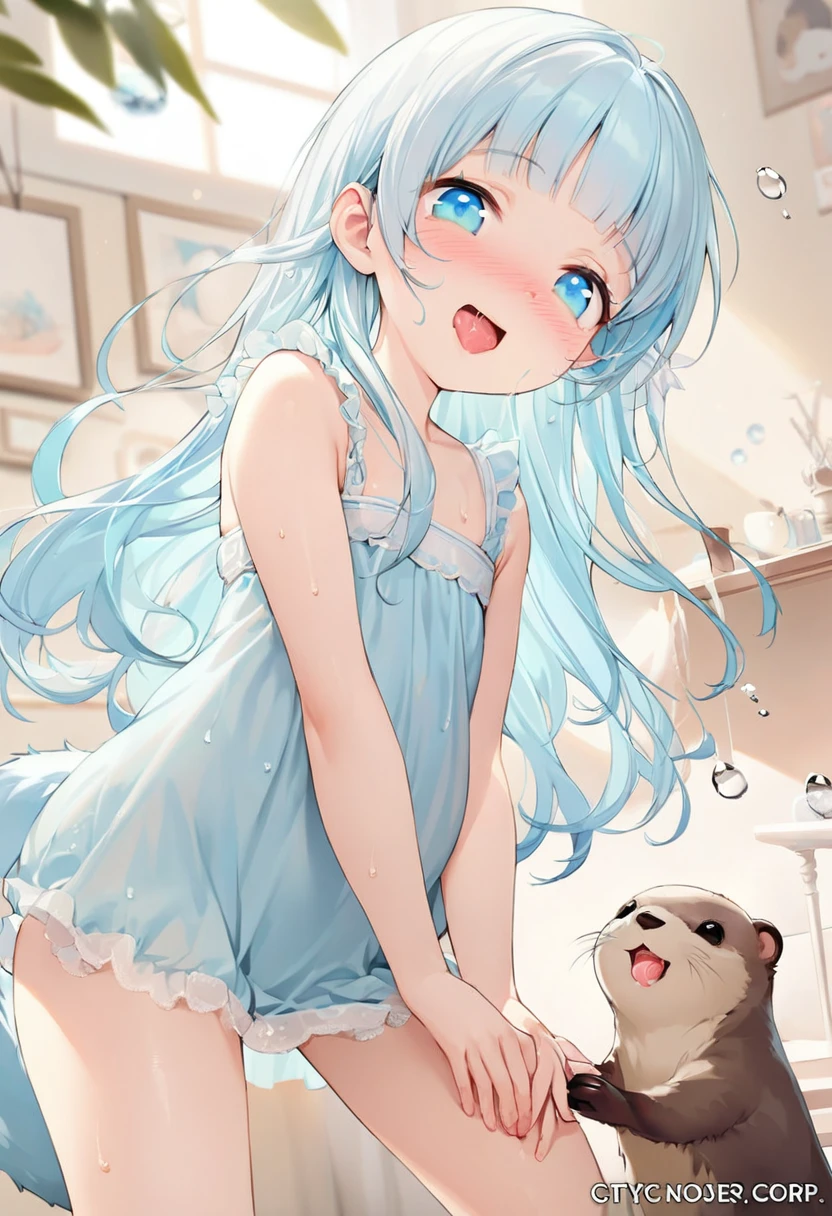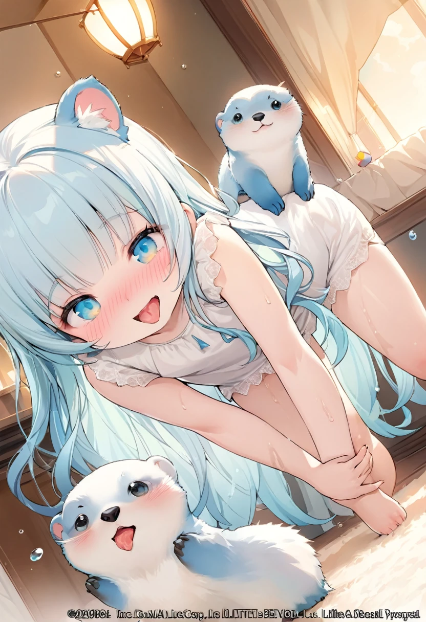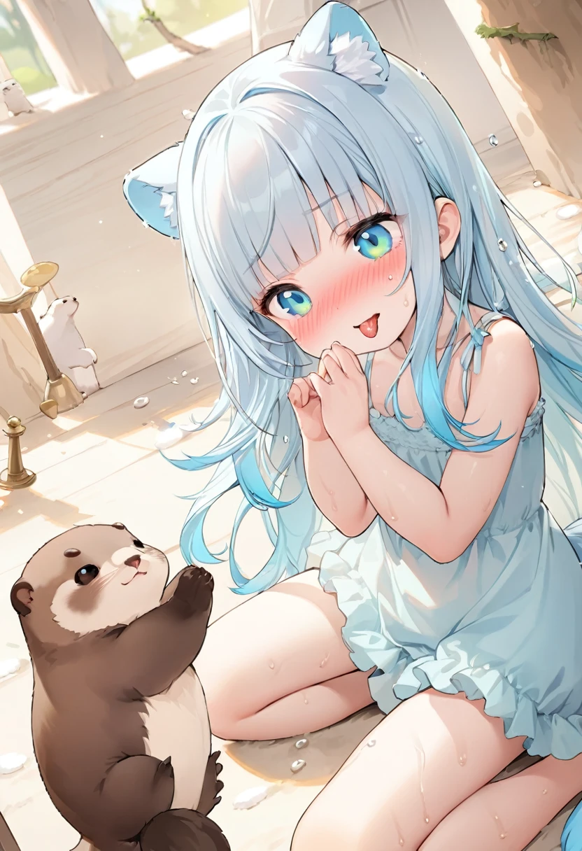 「こ…こう?」カワウソに可愛さの弟子入りする女の子