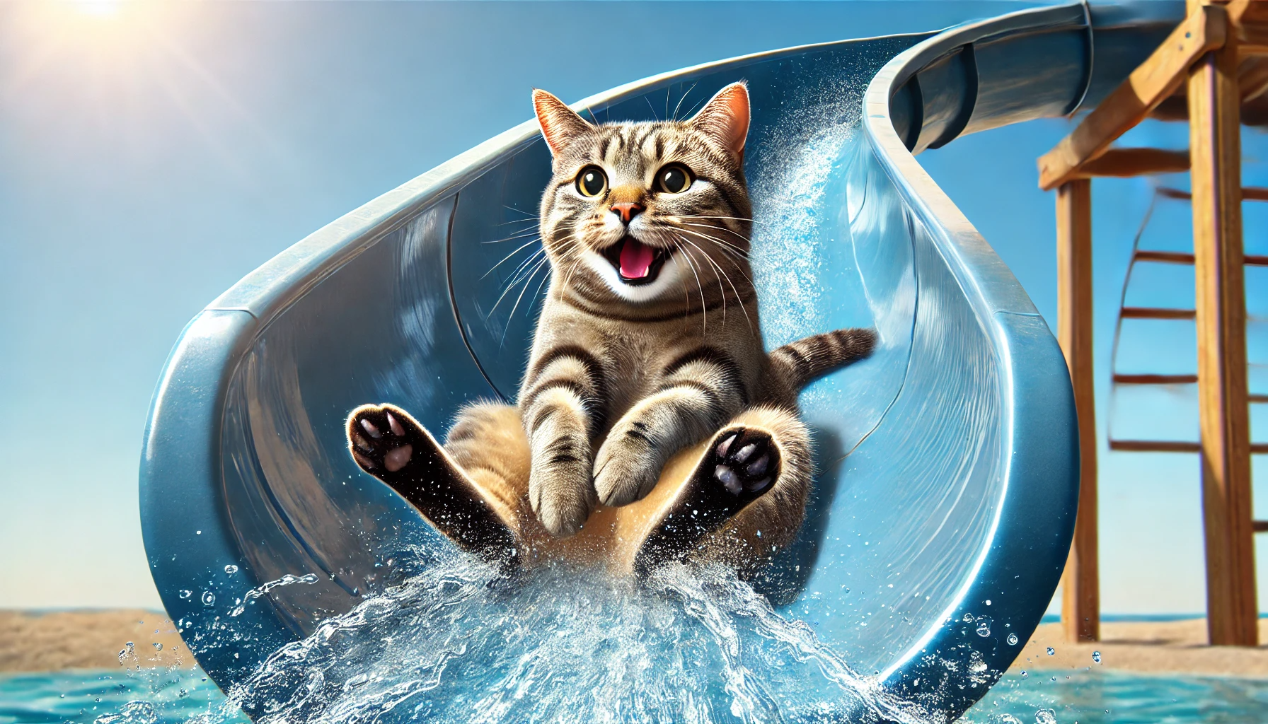 キミは水が苦手じゃないんだね。楽しそうで何より