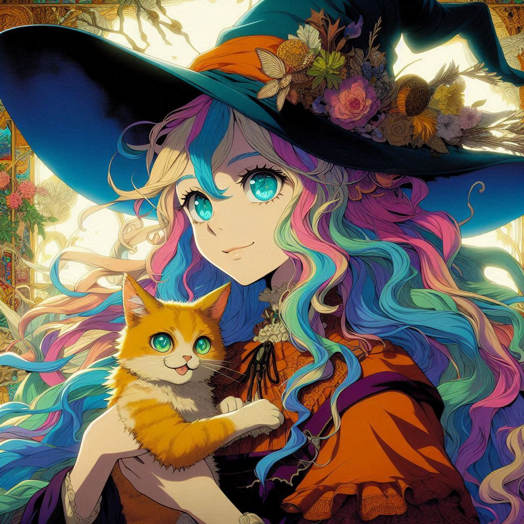 “Moments of Magic, AI Illustration of a Witch Apprentice and Her Cat”
