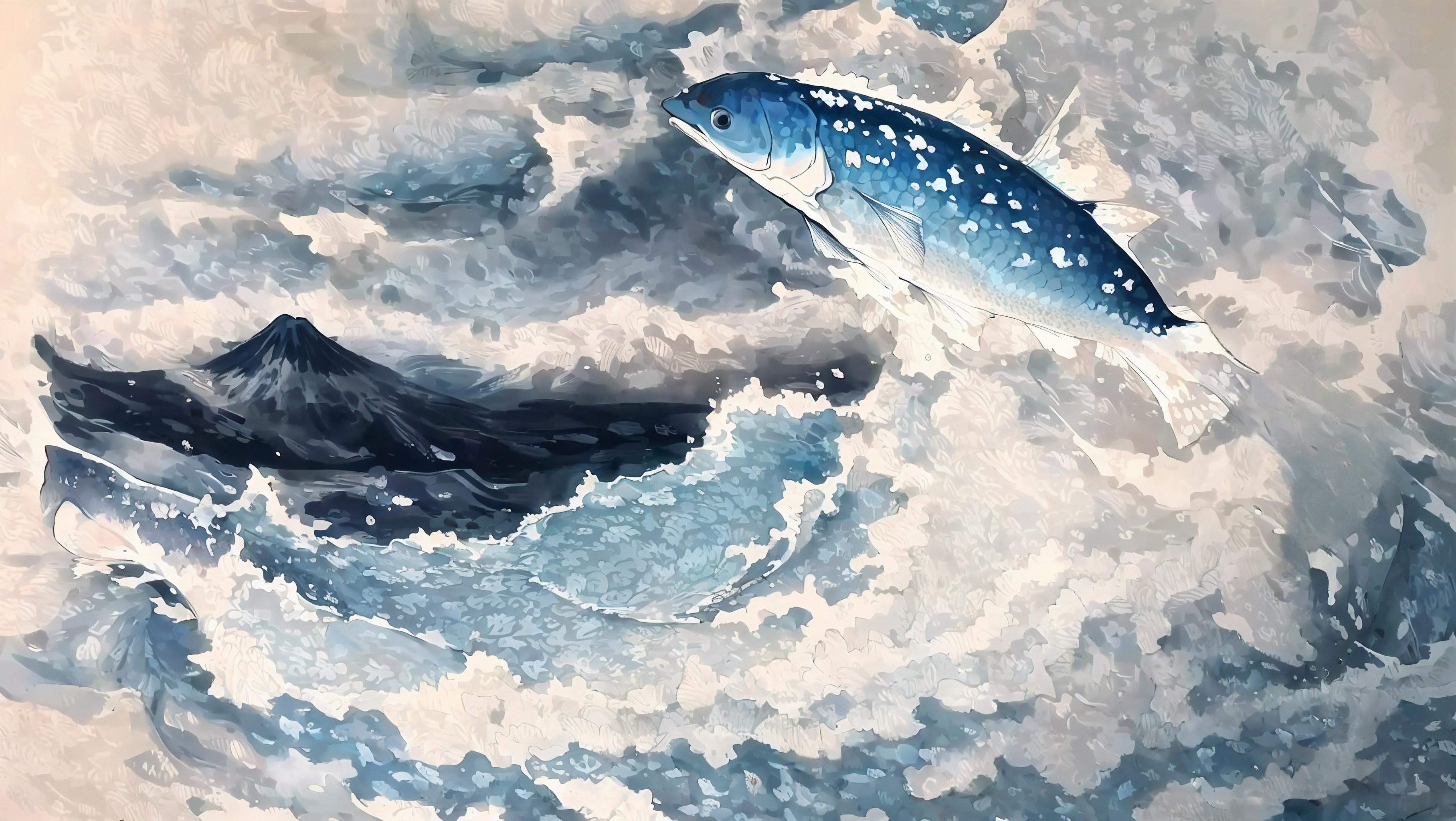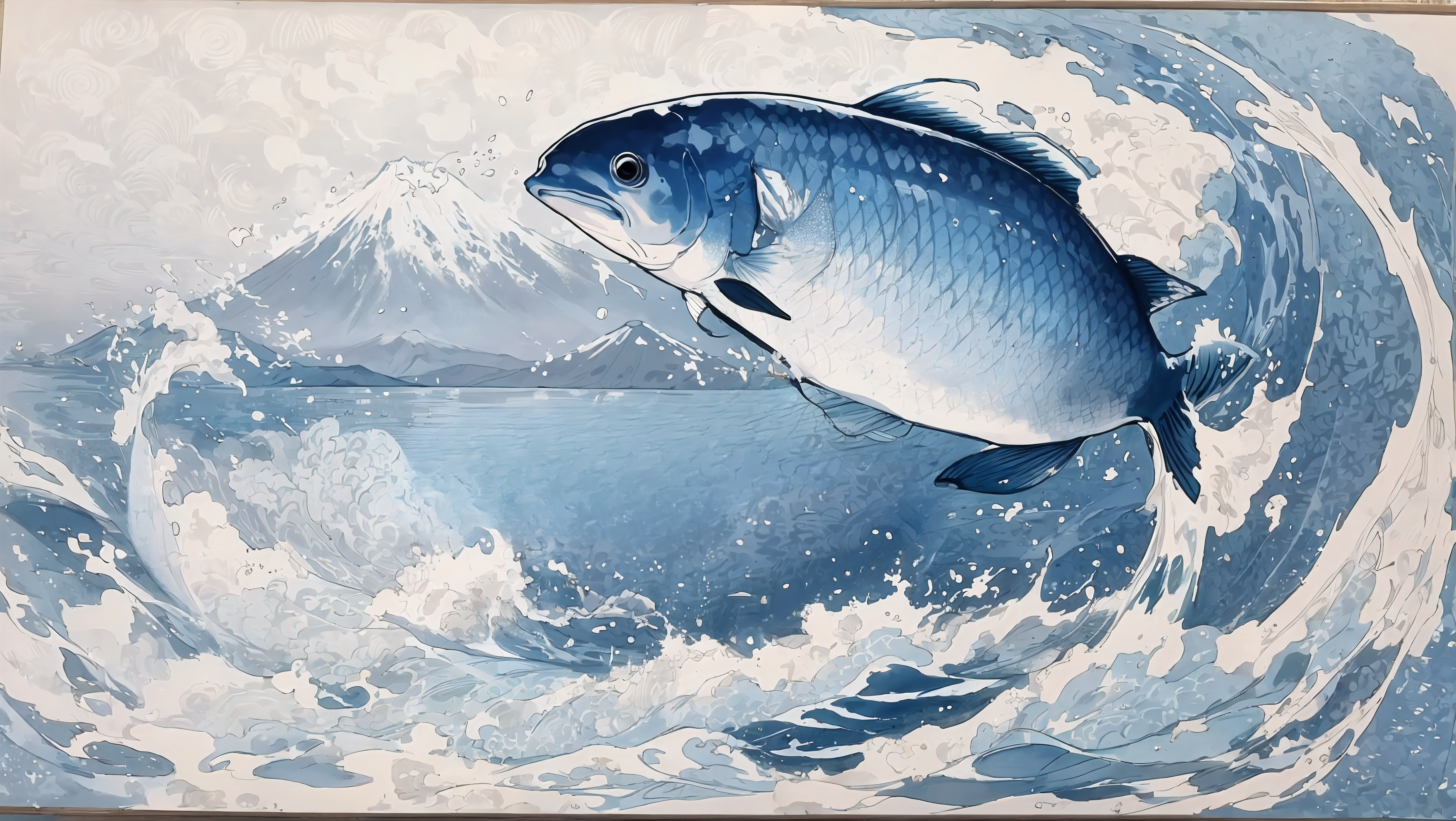 Aneraさん、コメントありがとうございます。 褒めて頂き嬉しいです。 富士と魚の位置がなかなか上手く生成出来ずに苦労しました。