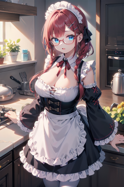 新築と青ポニテメイドちゃん