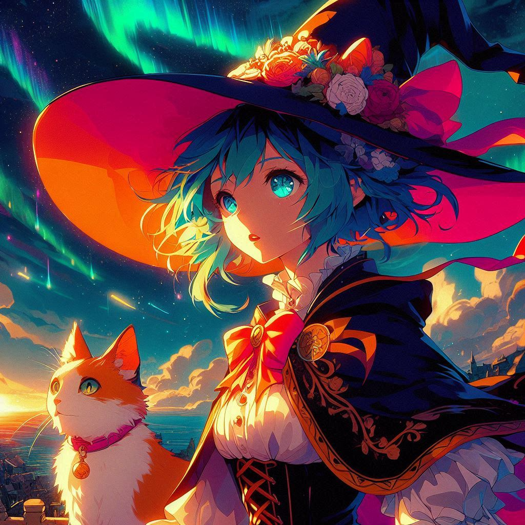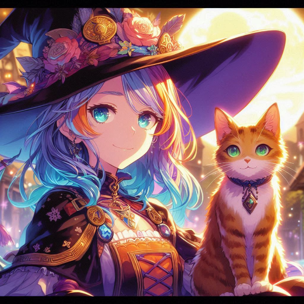 “Moments of Magic, AI Illustration of a Witch Apprentice and Her Cat”