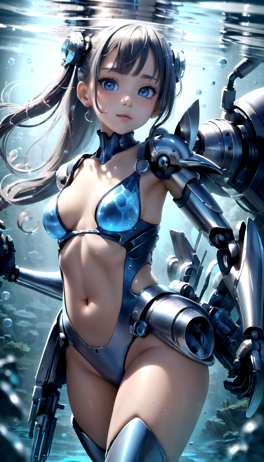 Robot girls active underwater