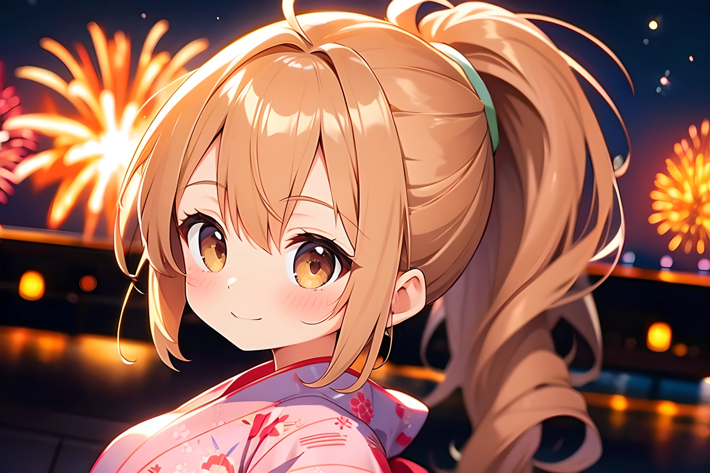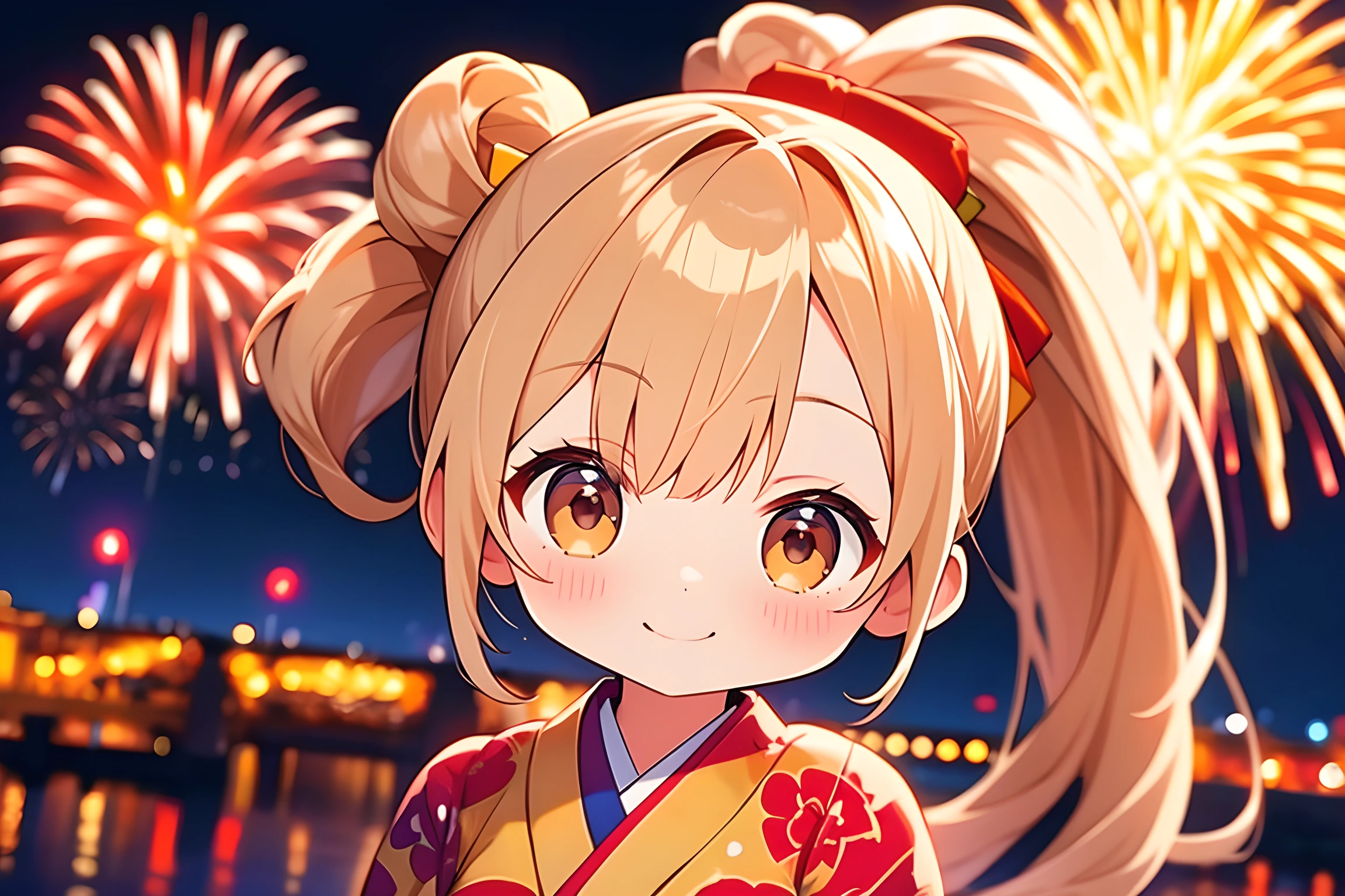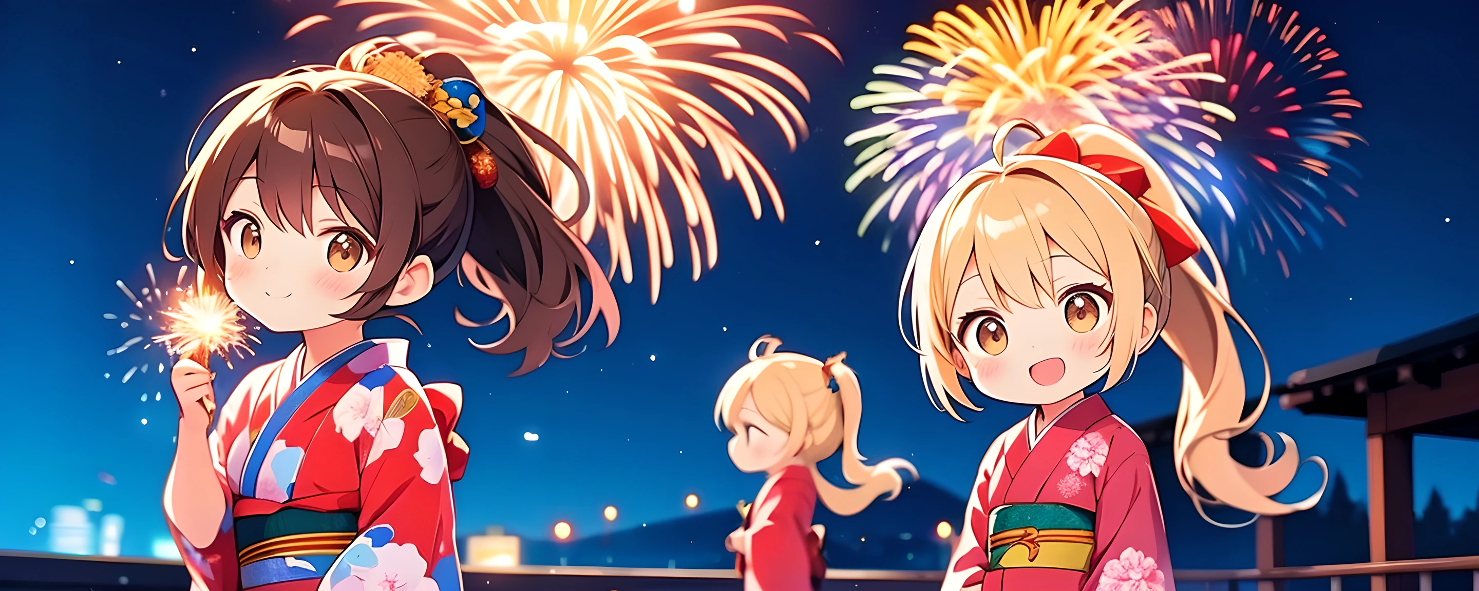 parameters: Beautiful,Masterpiece,Best Quality: 1.6,Best Aesthetic: 1.8,Photo-realistic: 1.8,Cinematic Perfect Lighting: 2,Fireworks Display: 2,Chibi girl: 1.7,Long hair: 2,Ponytail: 1.8,Shiny beige hair,hazel brown eyes: 2,Extremely detailed face: 2,Medium breasts: 1.6,Yukata: 2,Collection of poses: 1.4, <lora:Fixhands_anime_bdsqlsz_V1:1>