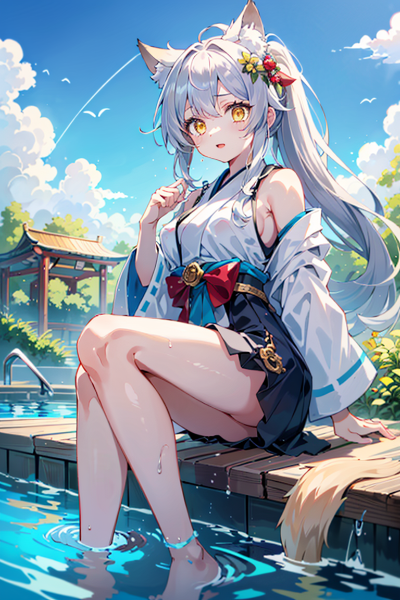 プールではしゃぐ妖狐さま