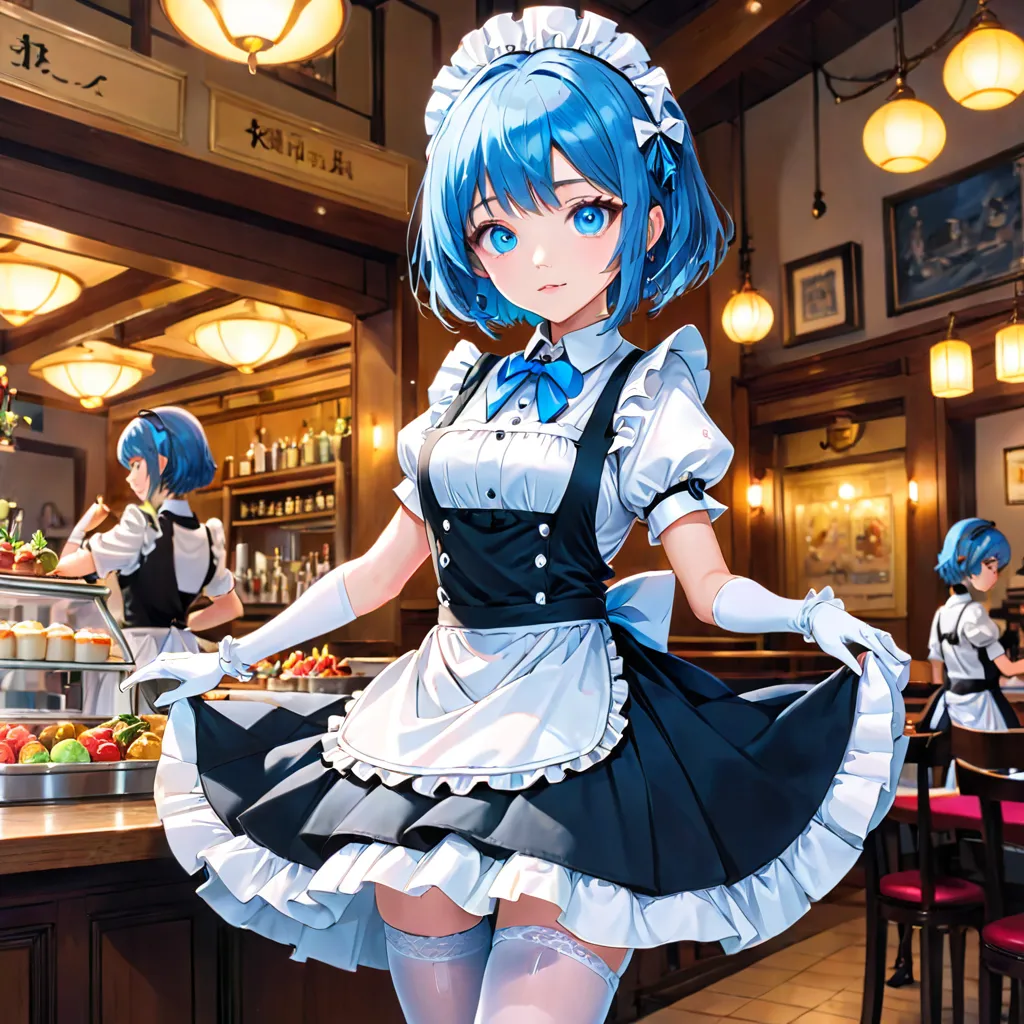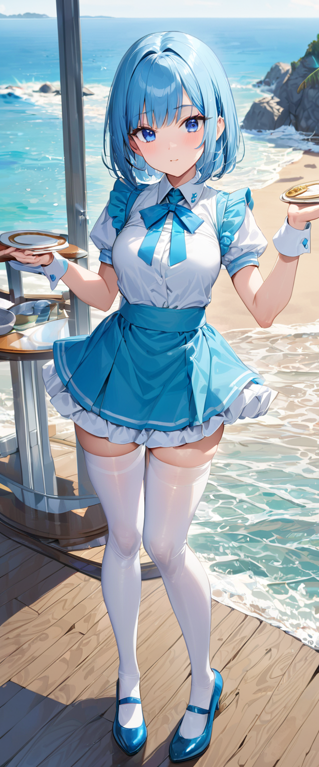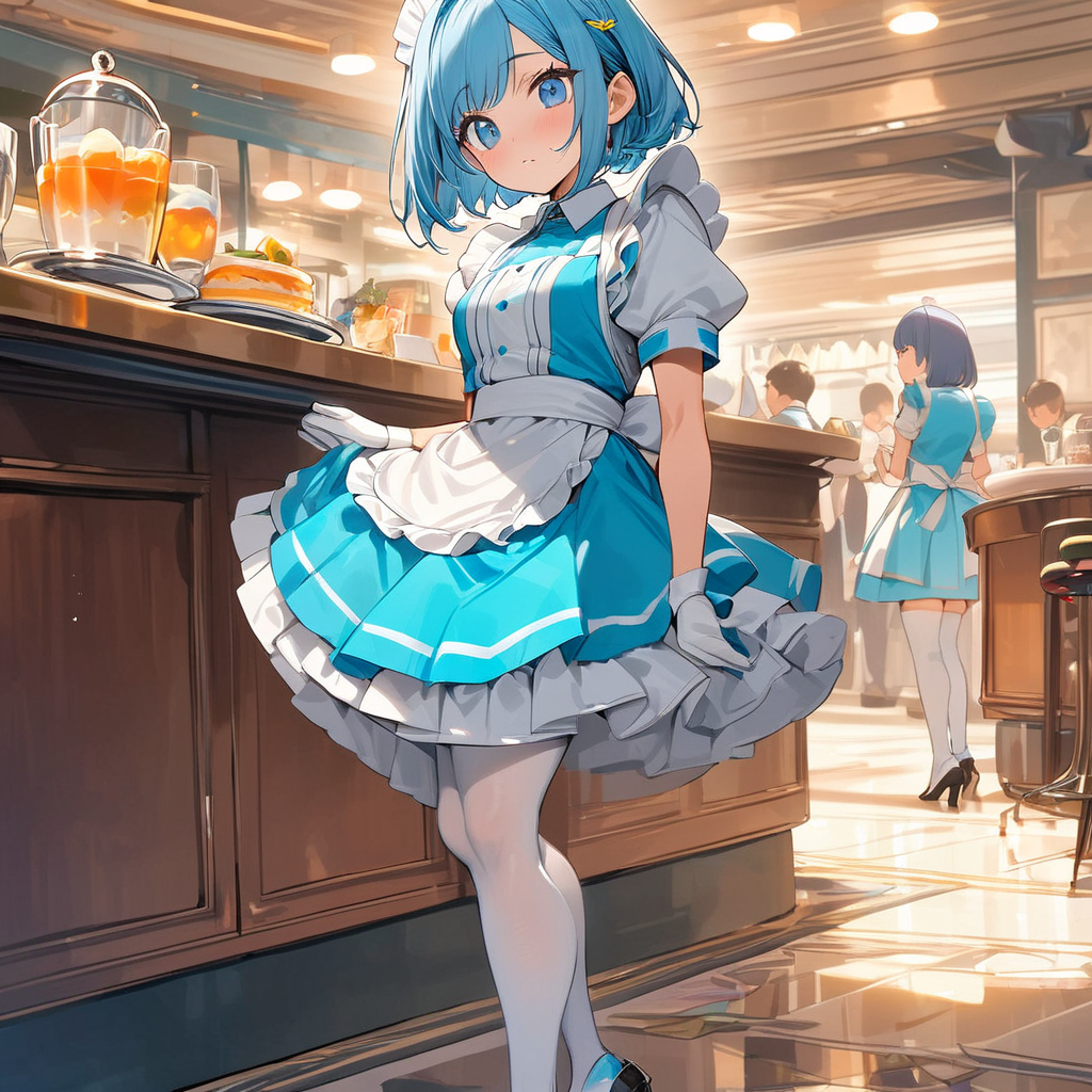 お昼の青髪ウエイトレスさん