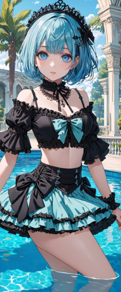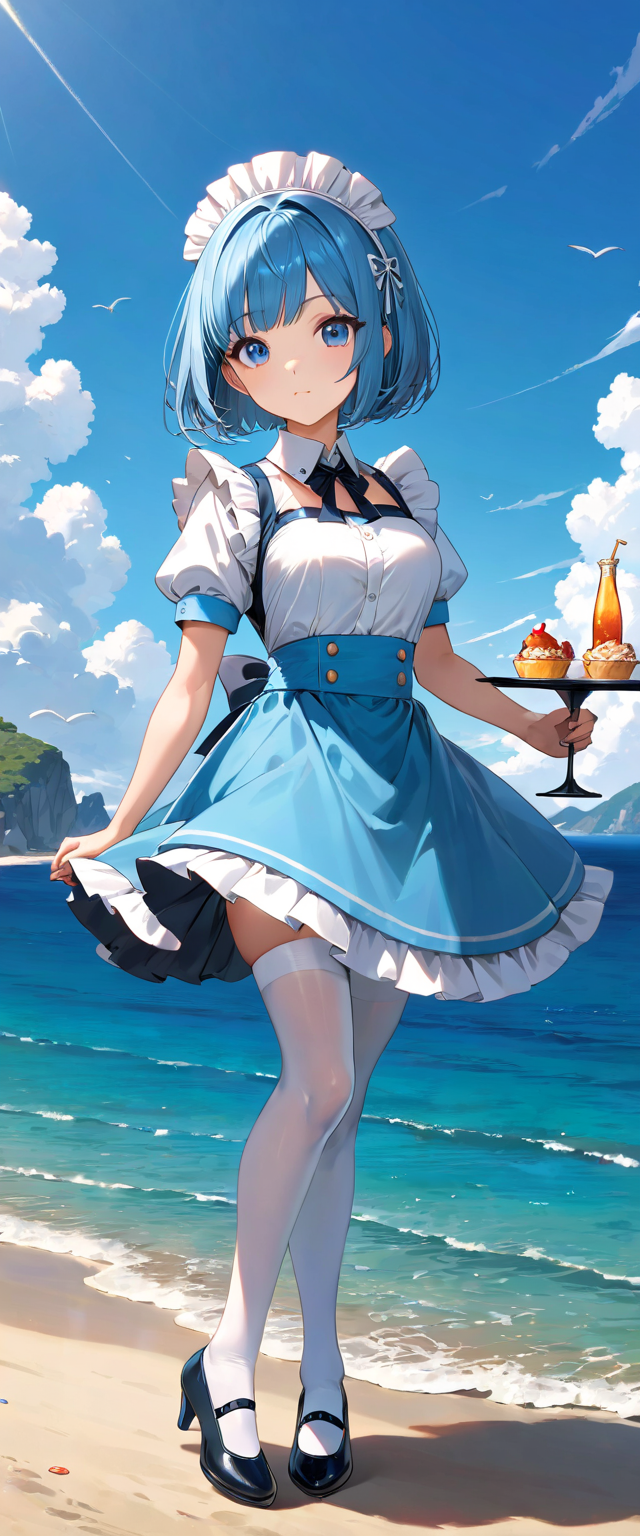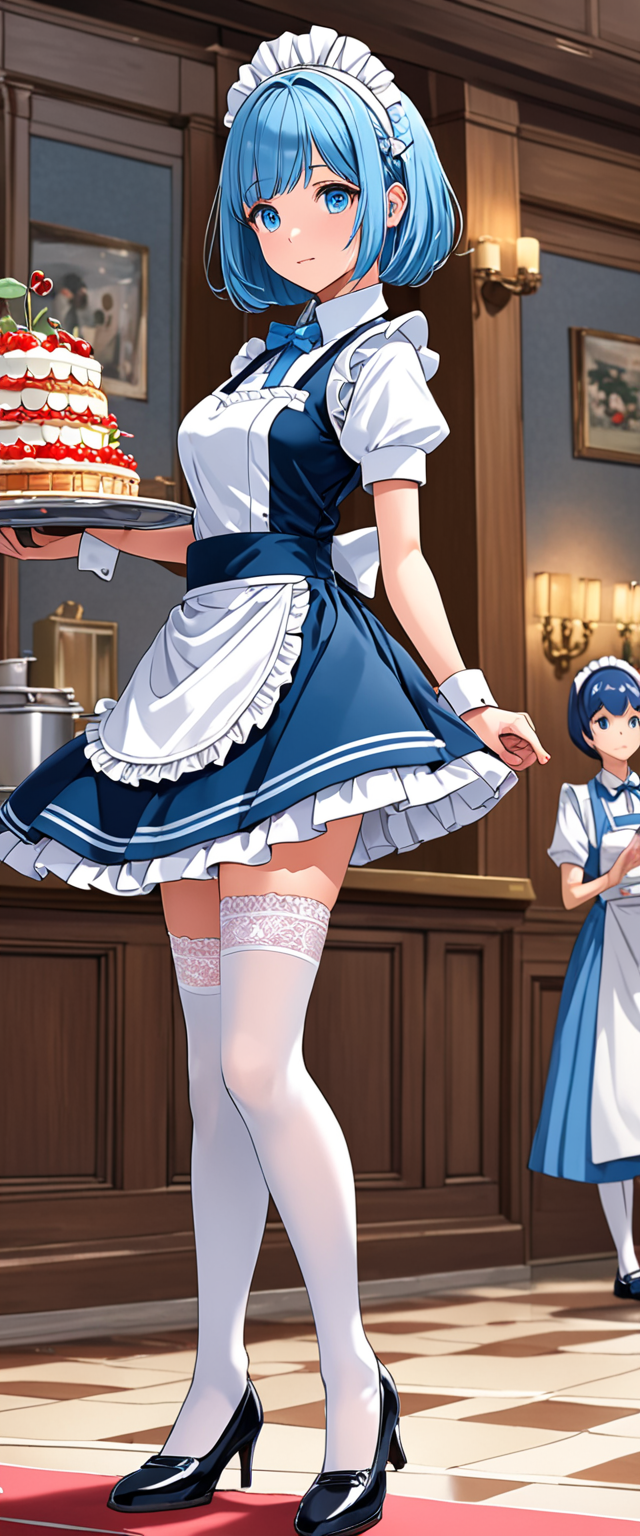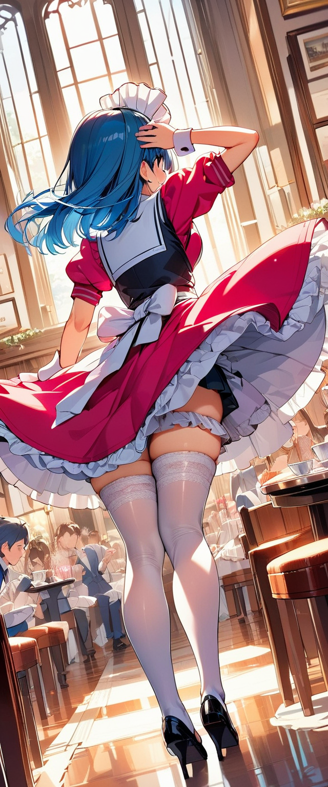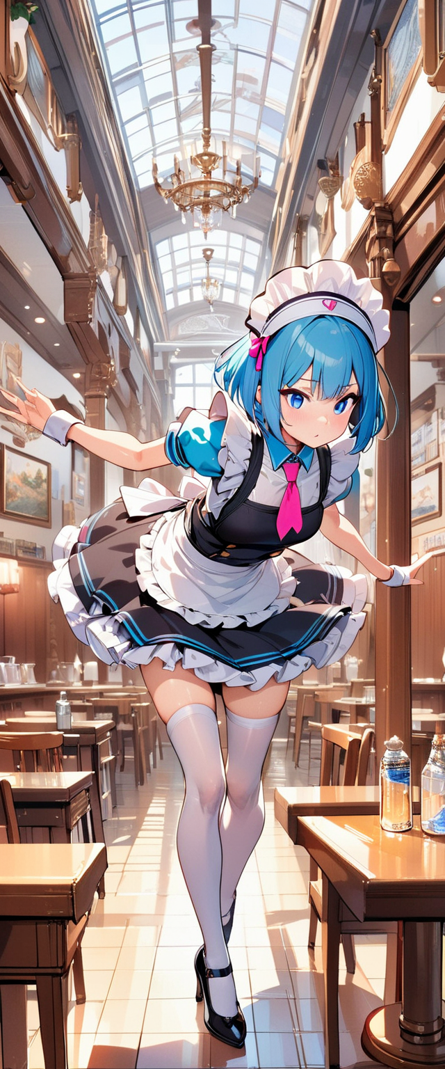 お昼の青髪ウエイトレスさん