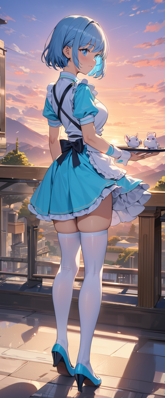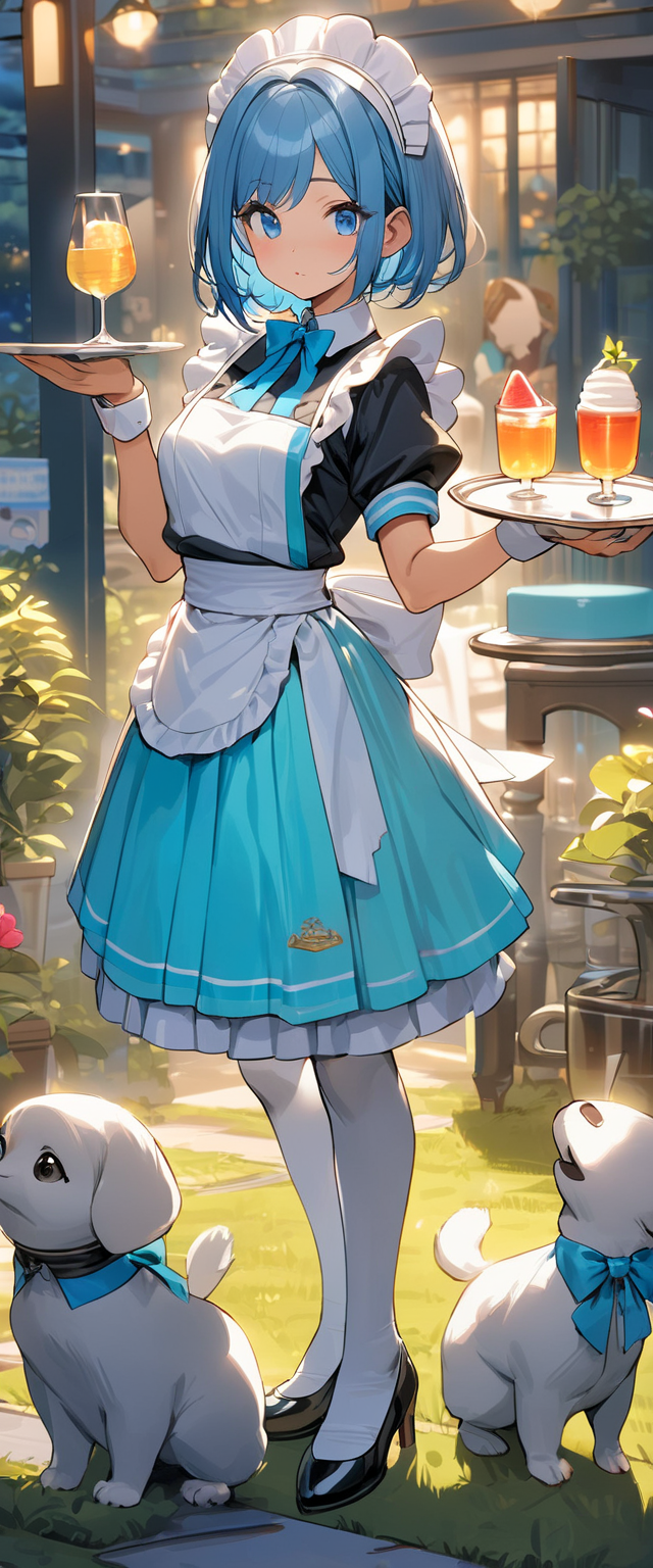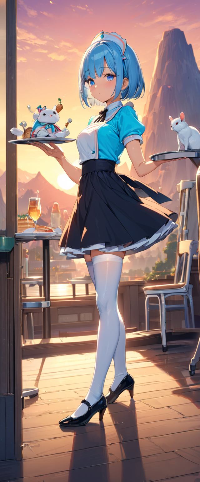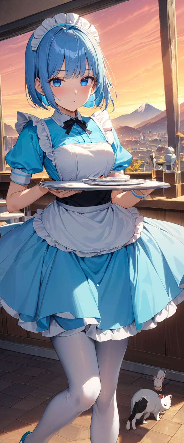 青髪ウエイトレスさん