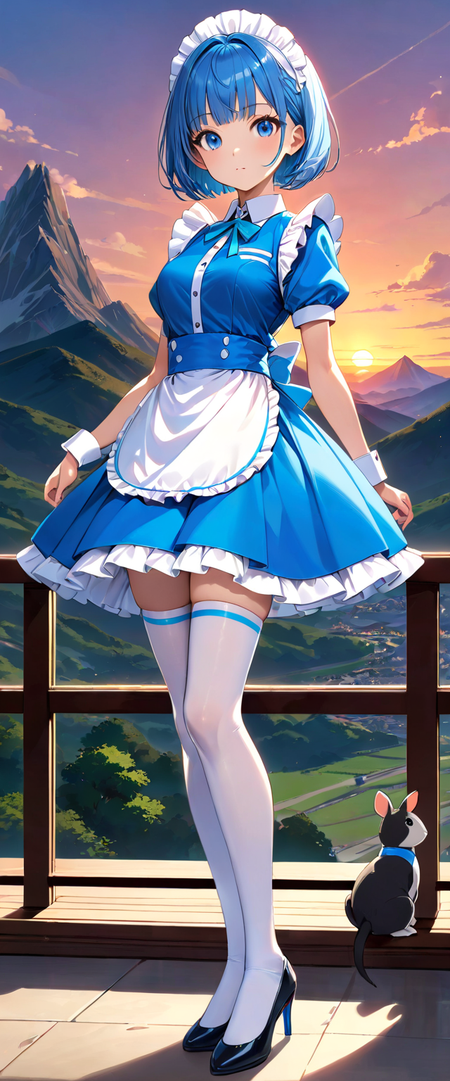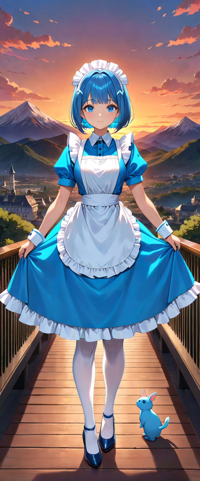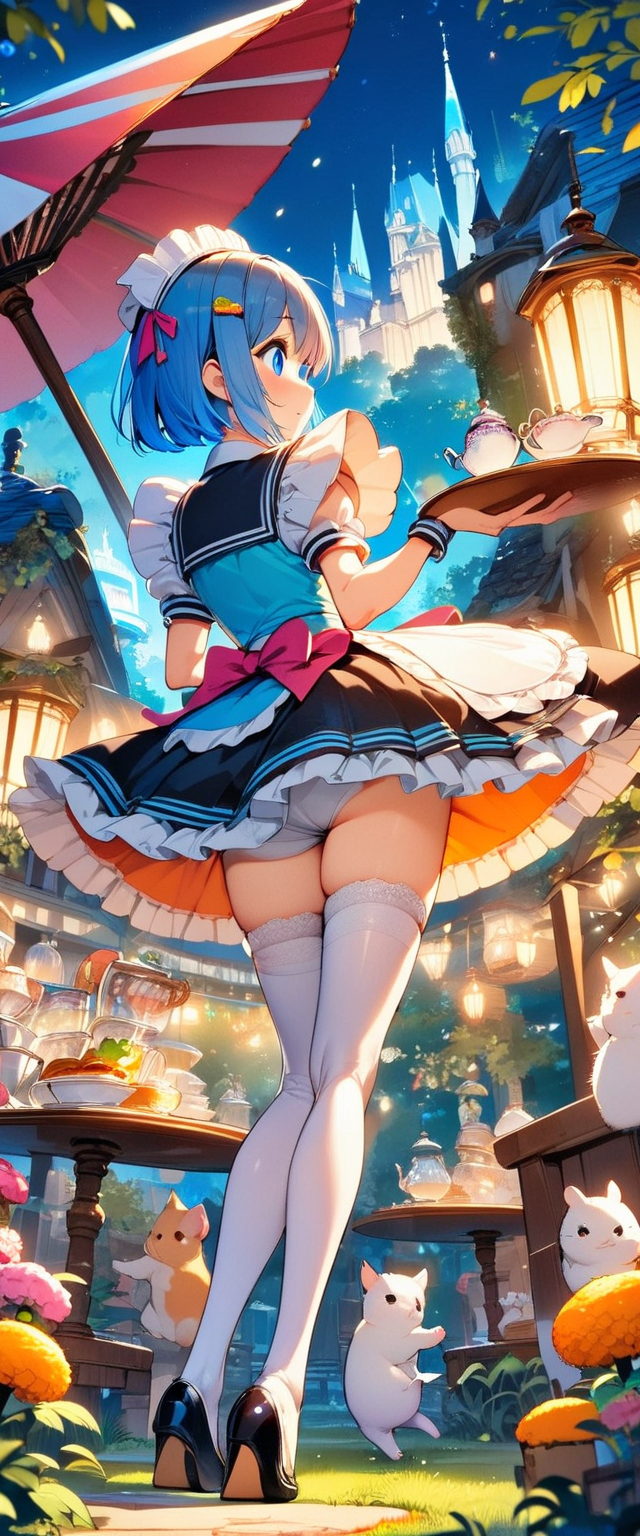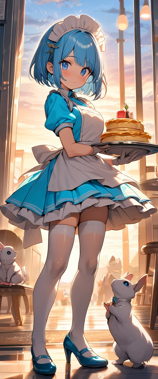 青髪ウエイトレスさん